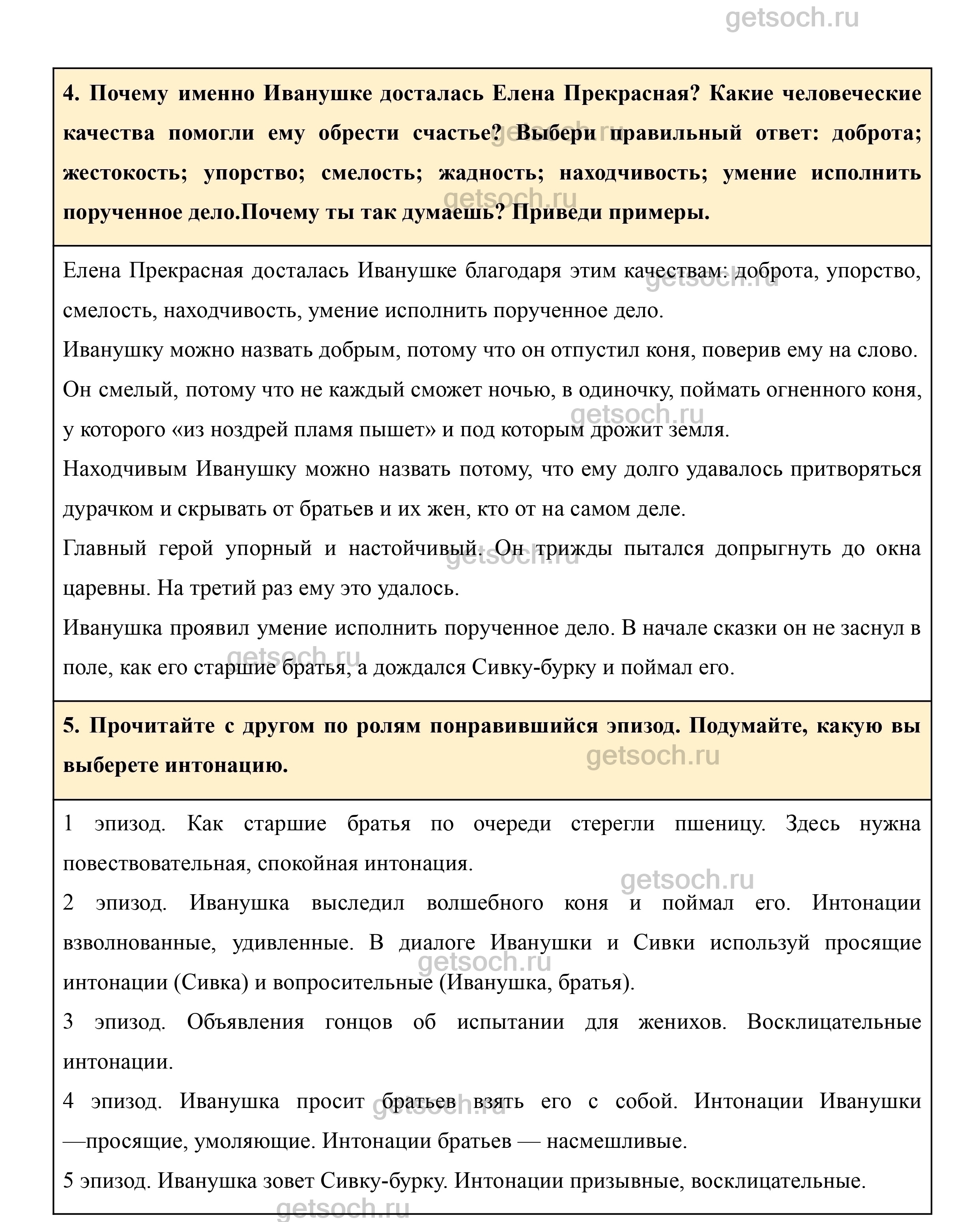 4. Почему именно Иванушке досталась Елена Прекрасная? Какие человеческие качества помогли ему обрести счастье? Выбери правильный ответ: доброта; жестокость; упорство; смелость; жадность; находчивость; умение исполнить порученное дело.Почему ты так думаешь? Приведи примеры.