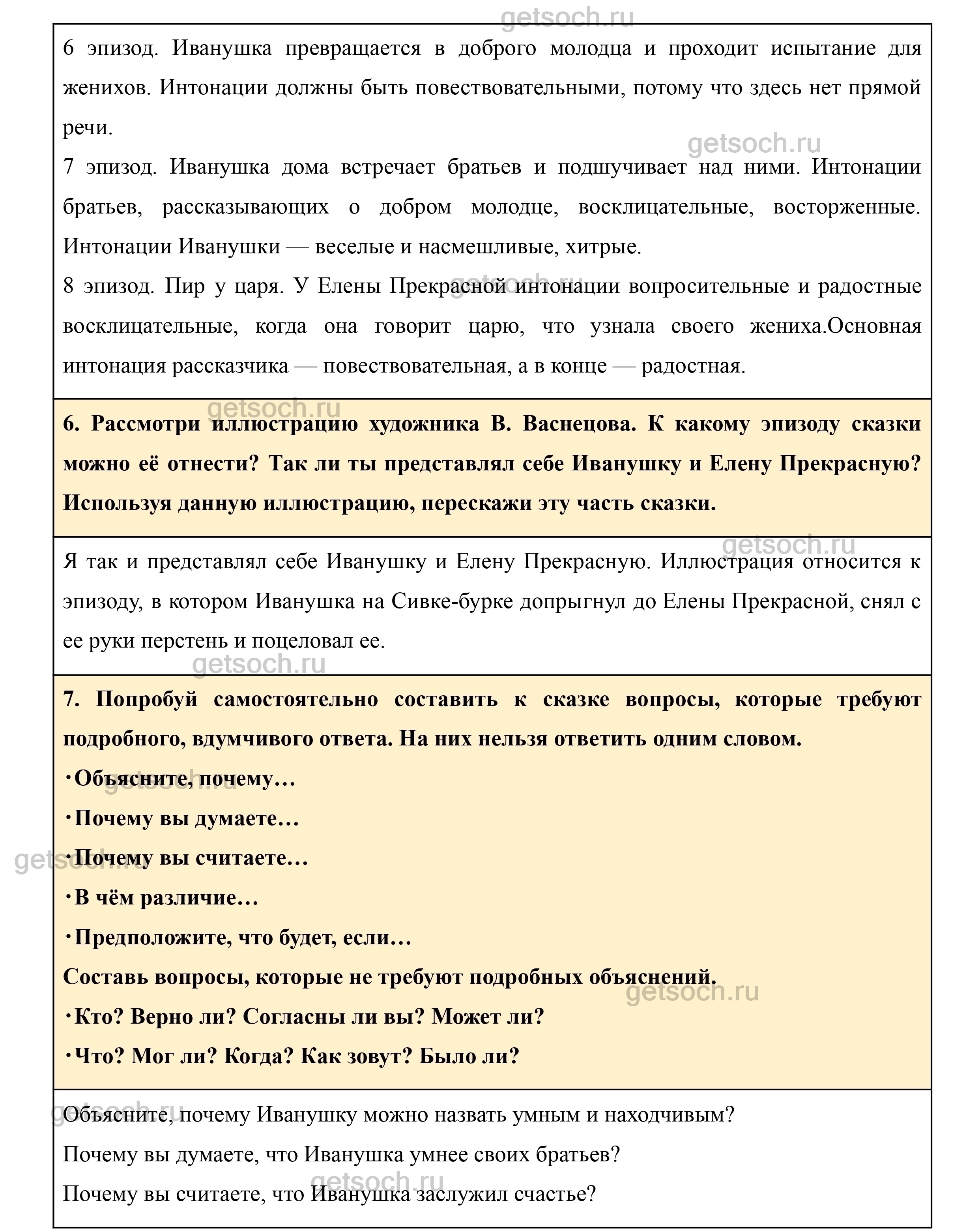 7. Попробуй самостоятельно составить к сказке вопросы, которые требуют подробного, вдумчивого ответа. На них нельзя ответить одним словом.