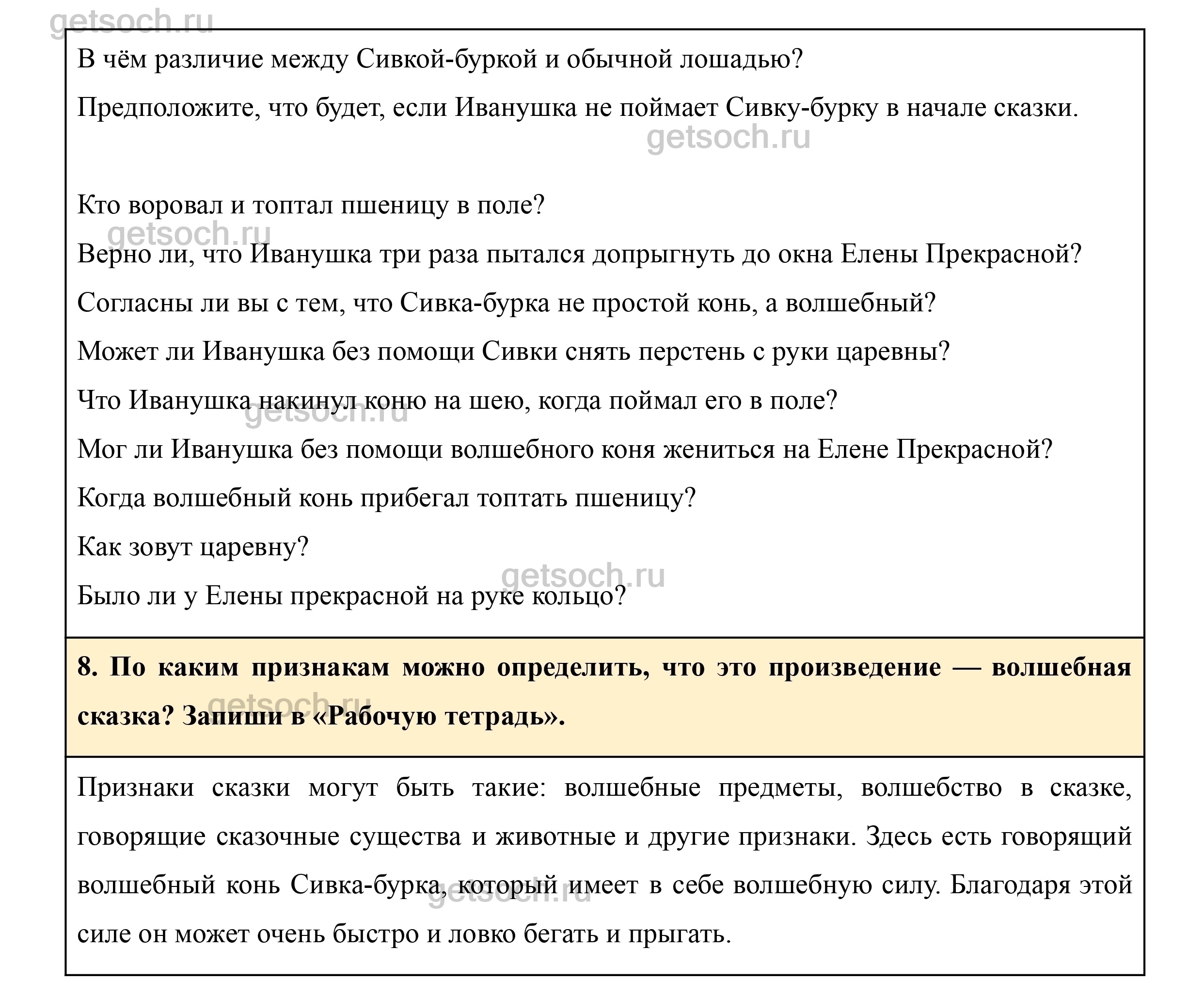 8. По каким признакам можно определить, что это произведение — волшебная сказка? Запиши в «Рабочую тетрадь».