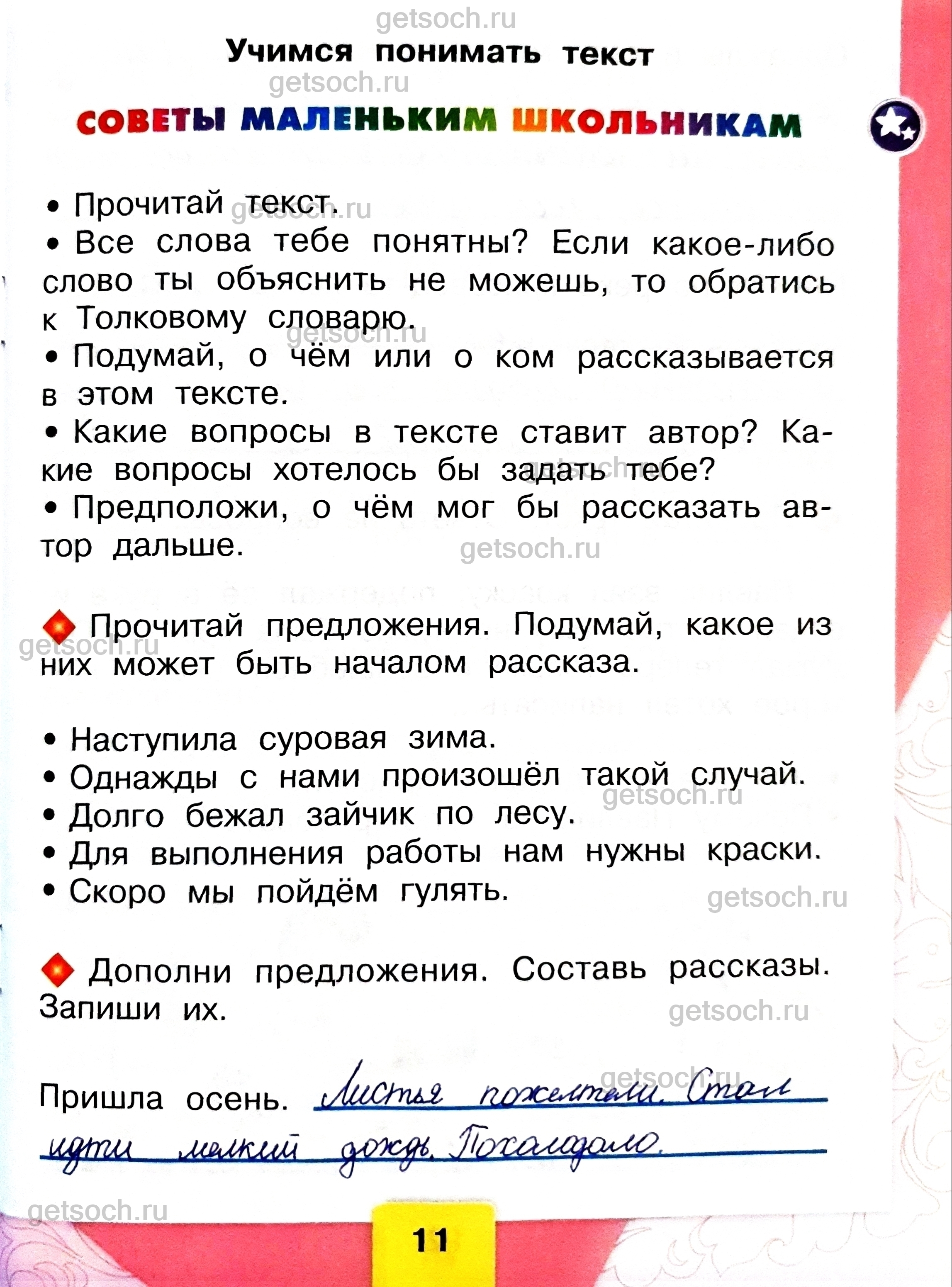 ♦ Дополни предложения. Составь рассказы. Запиши их.Пришла осень. _________________________________