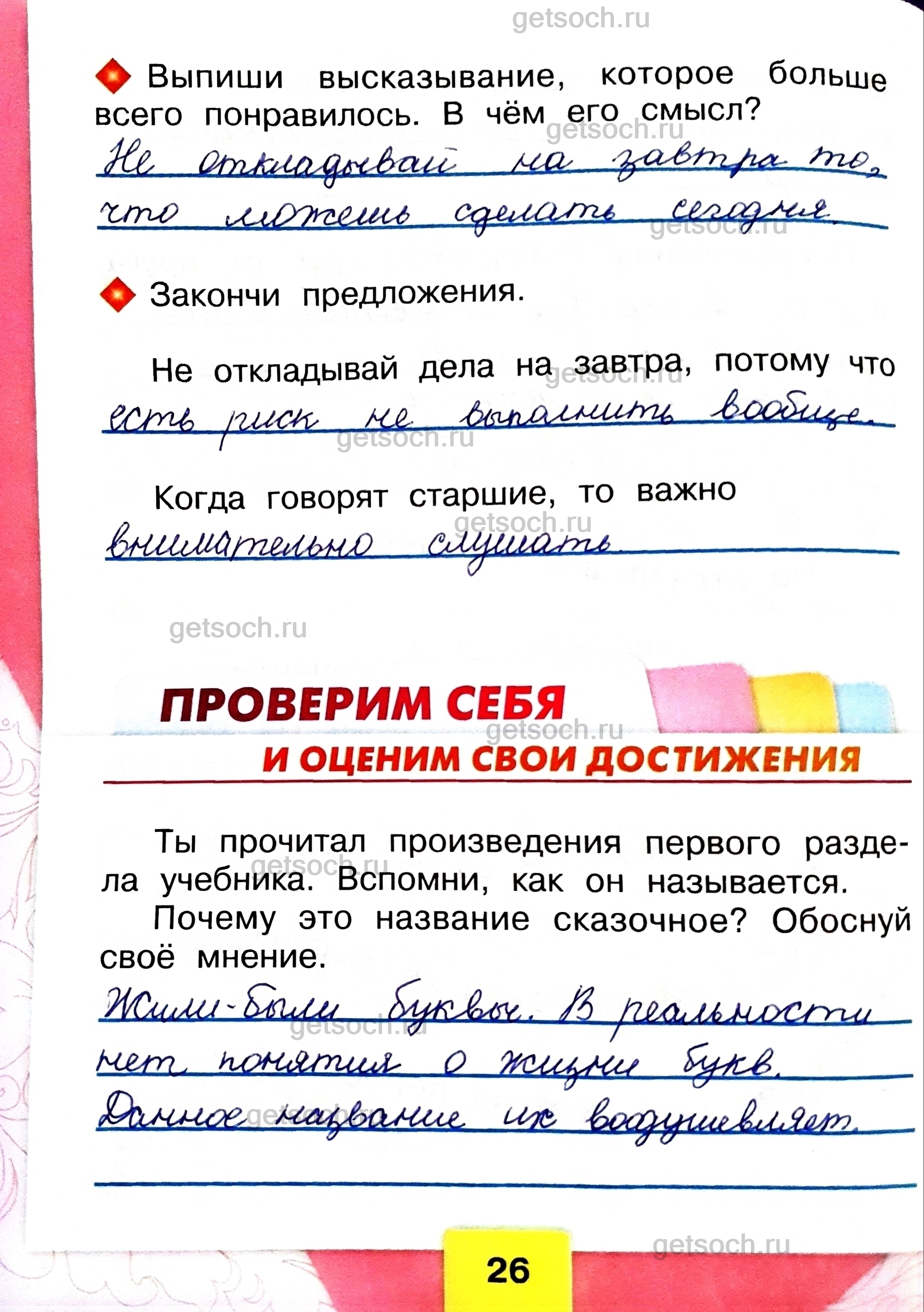 Рассмотрим ответы на задания учебника по литературному чтению для 1 класса автора Бойковой Страница 26