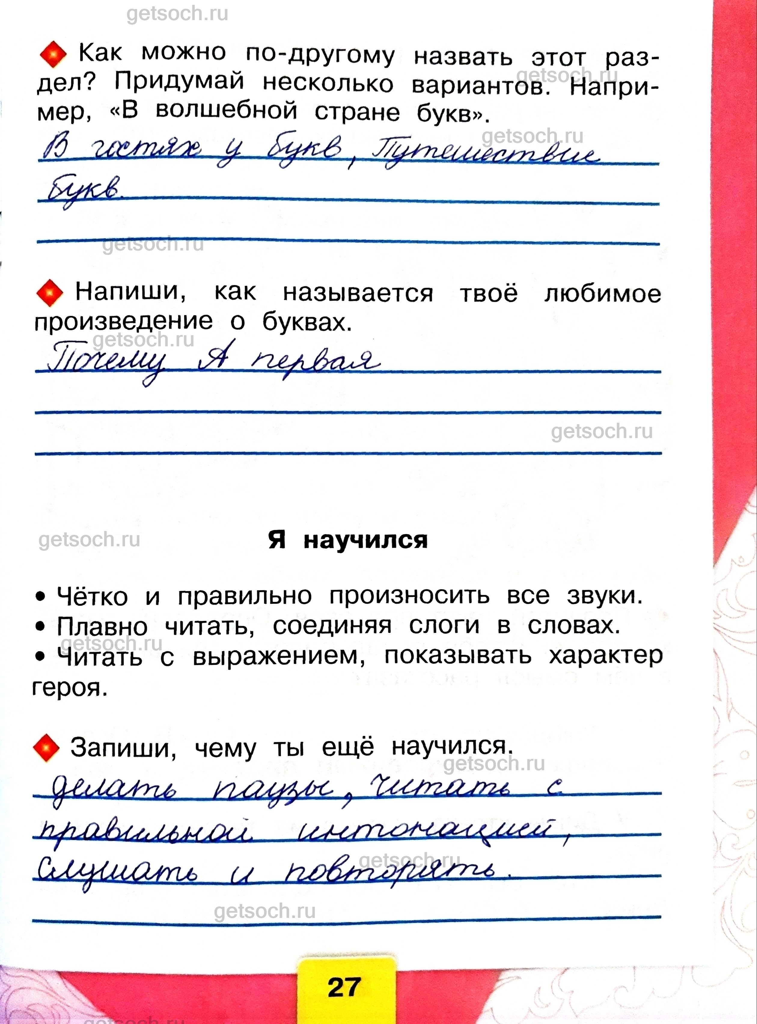 Рассмотрим ответы на задания учебника по литературному чтению для 1 класса автора Бойковой Страница 27