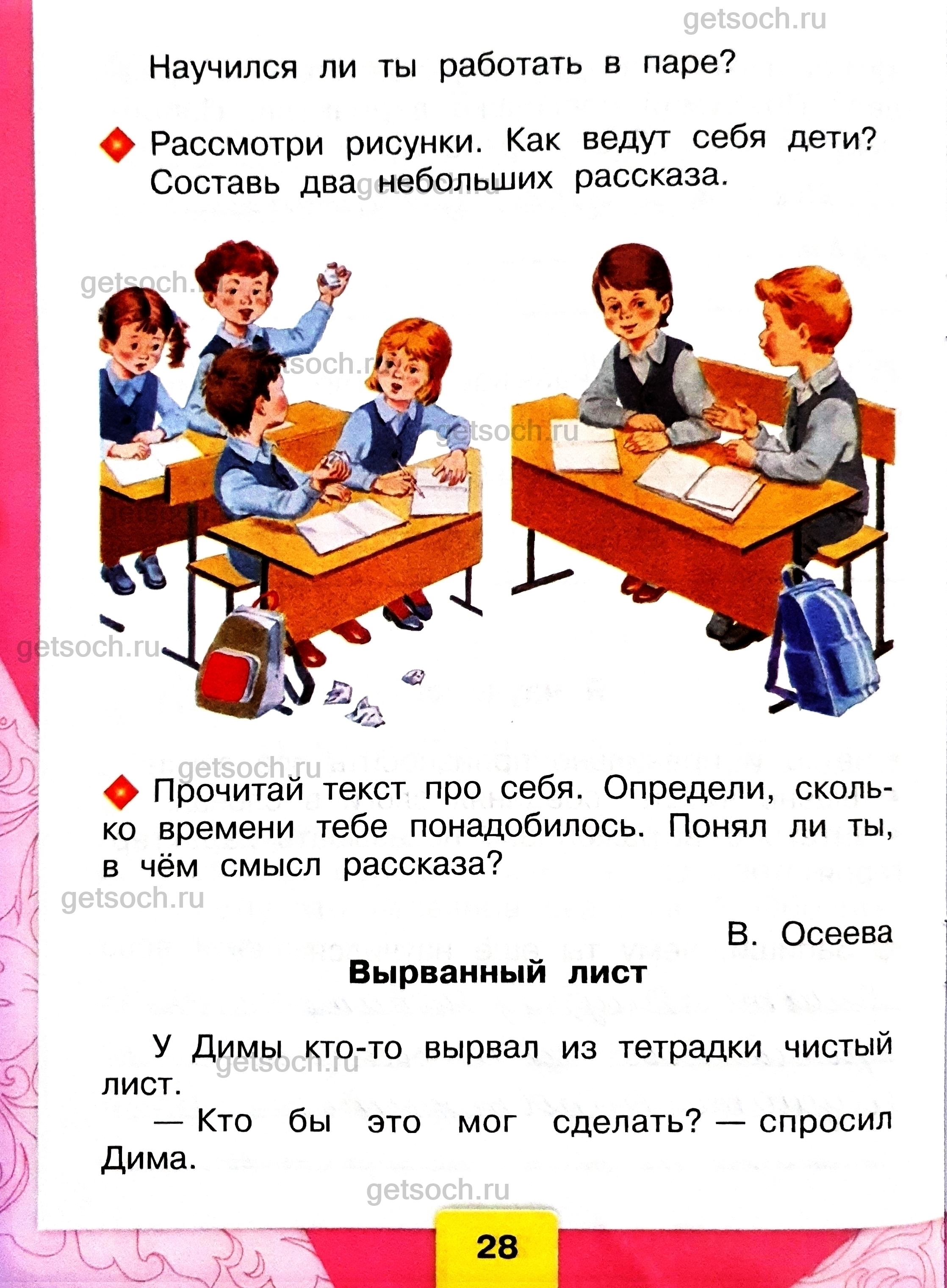 В. ОсееваВырванный лист♦ Прочитай текст про себя. Определи, сколько времени тебе понадобилось. Понял ли ты, в чём смысл рассказа?
