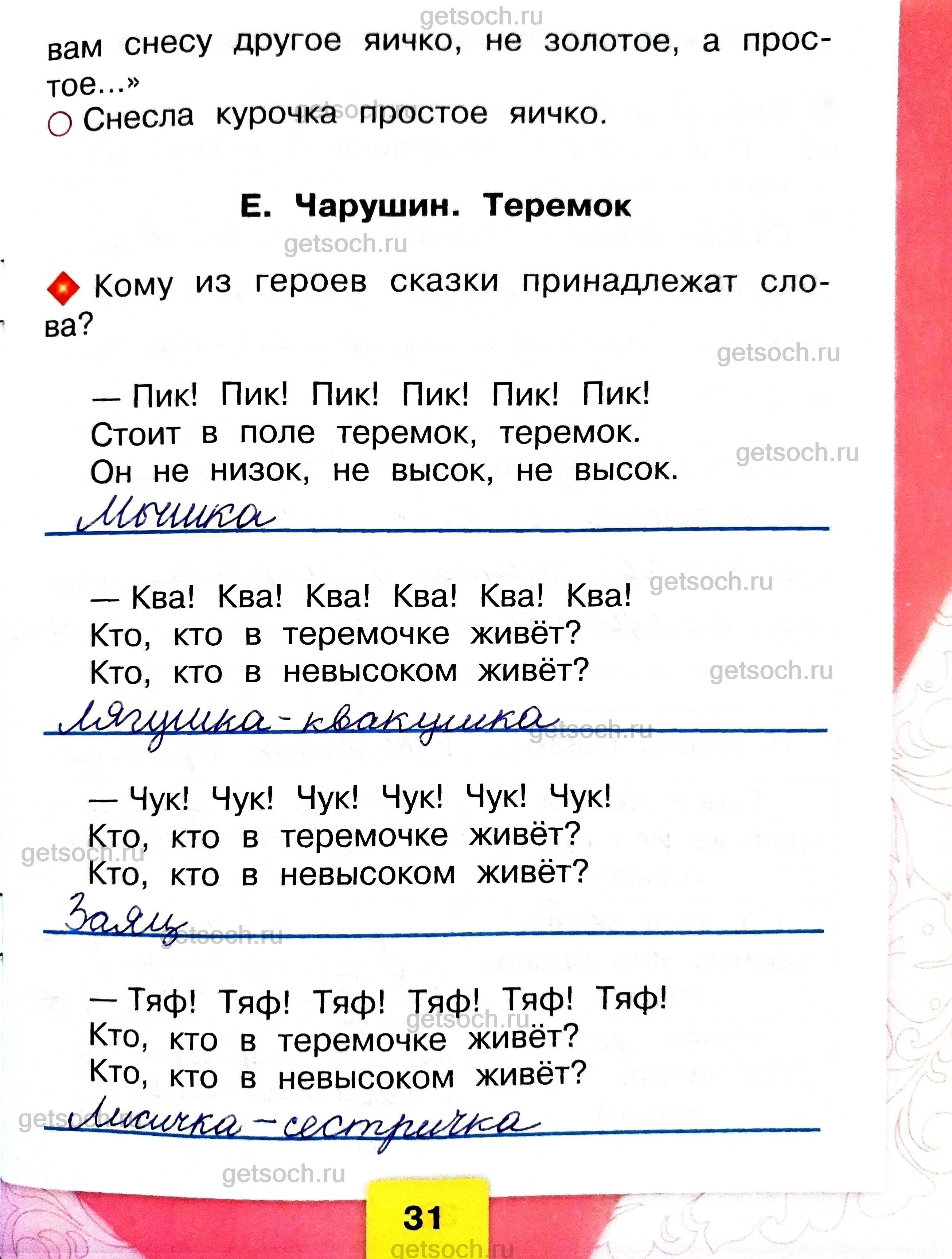 Рассмотрим ответы на задания учебника по литературному чтению для 1 класса автора Бойковой Страница 31