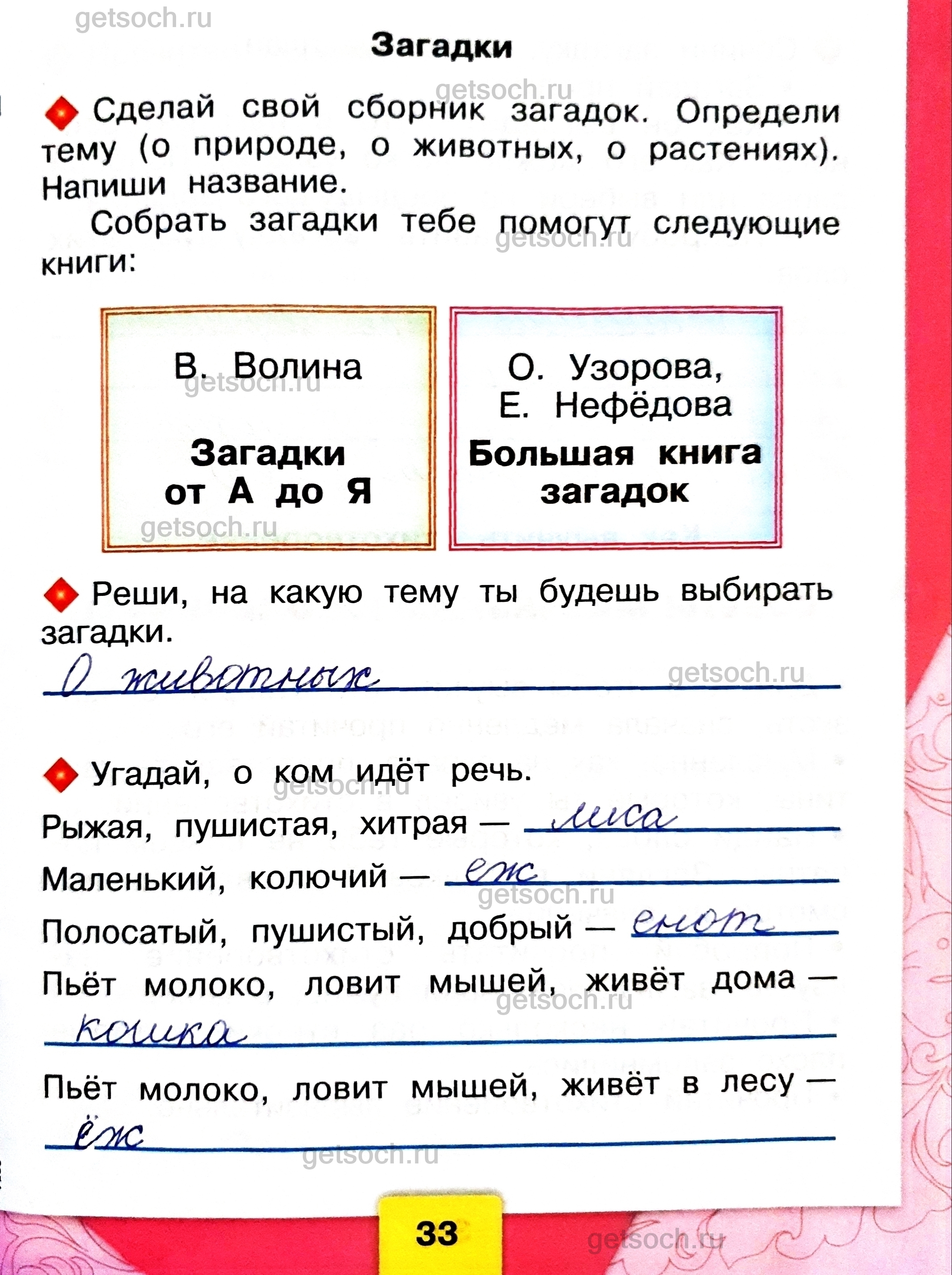 Рассмотрим ответы на задания учебника по литературному чтению для 1 класса автора Бойковой Страница 33