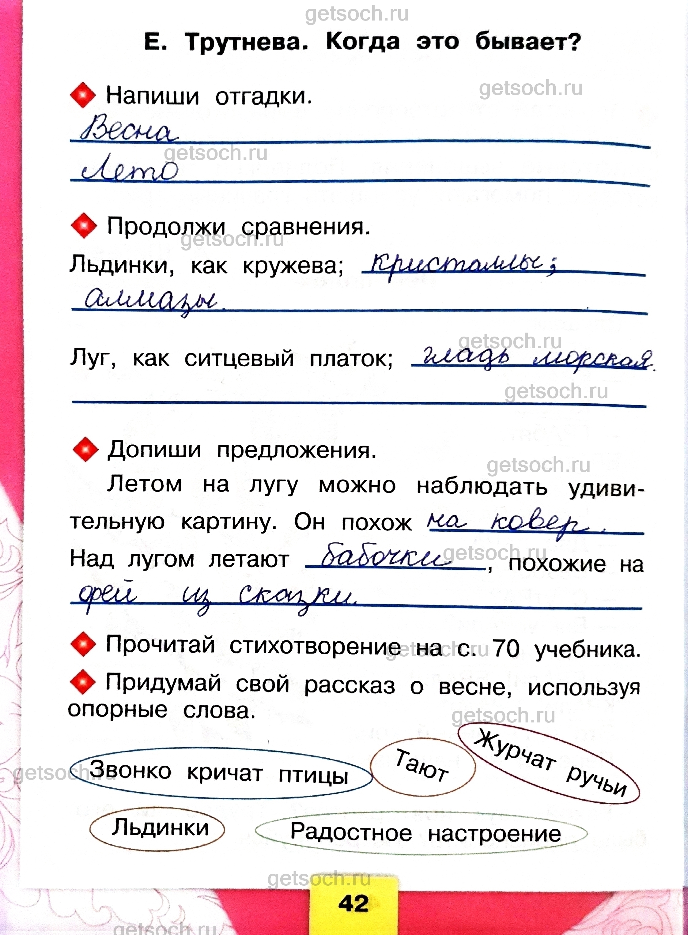 Рассмотрим ответы на задания учебника по литературному чтению для 1 класса автора Бойковой Страница 42