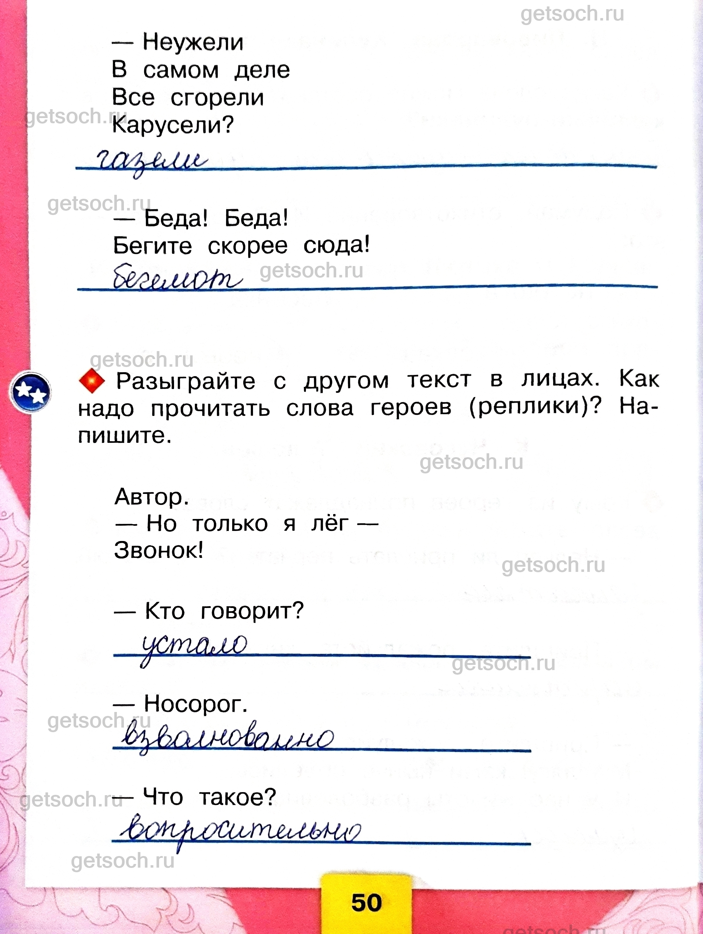 Рассмотрим ответы на задания учебника по литературному чтению для 1 класса автора Бойковой Страница 50