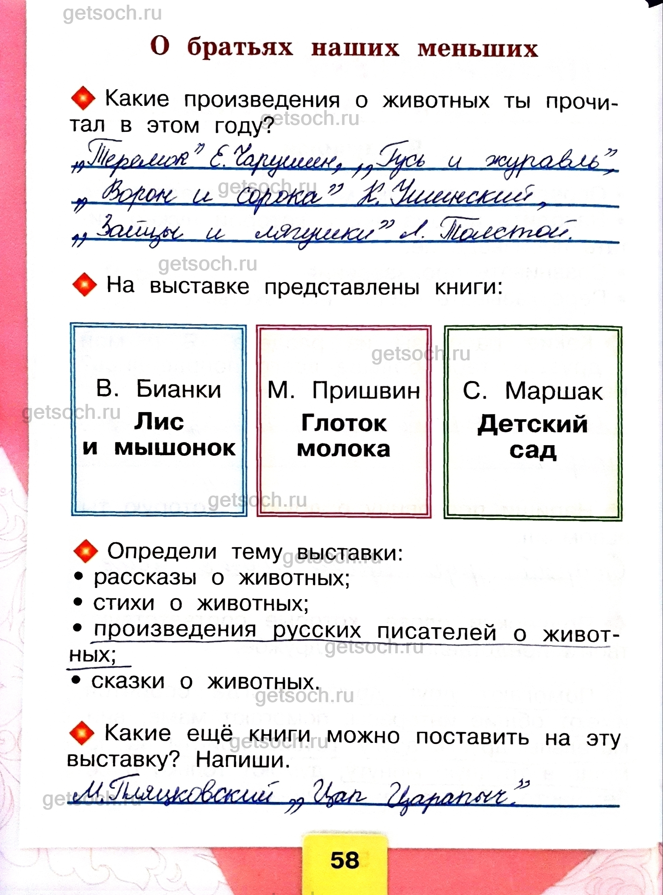 Рассмотрим ответы на задания учебника по литературному чтению для 1 класса автора Бойковой Страница 58