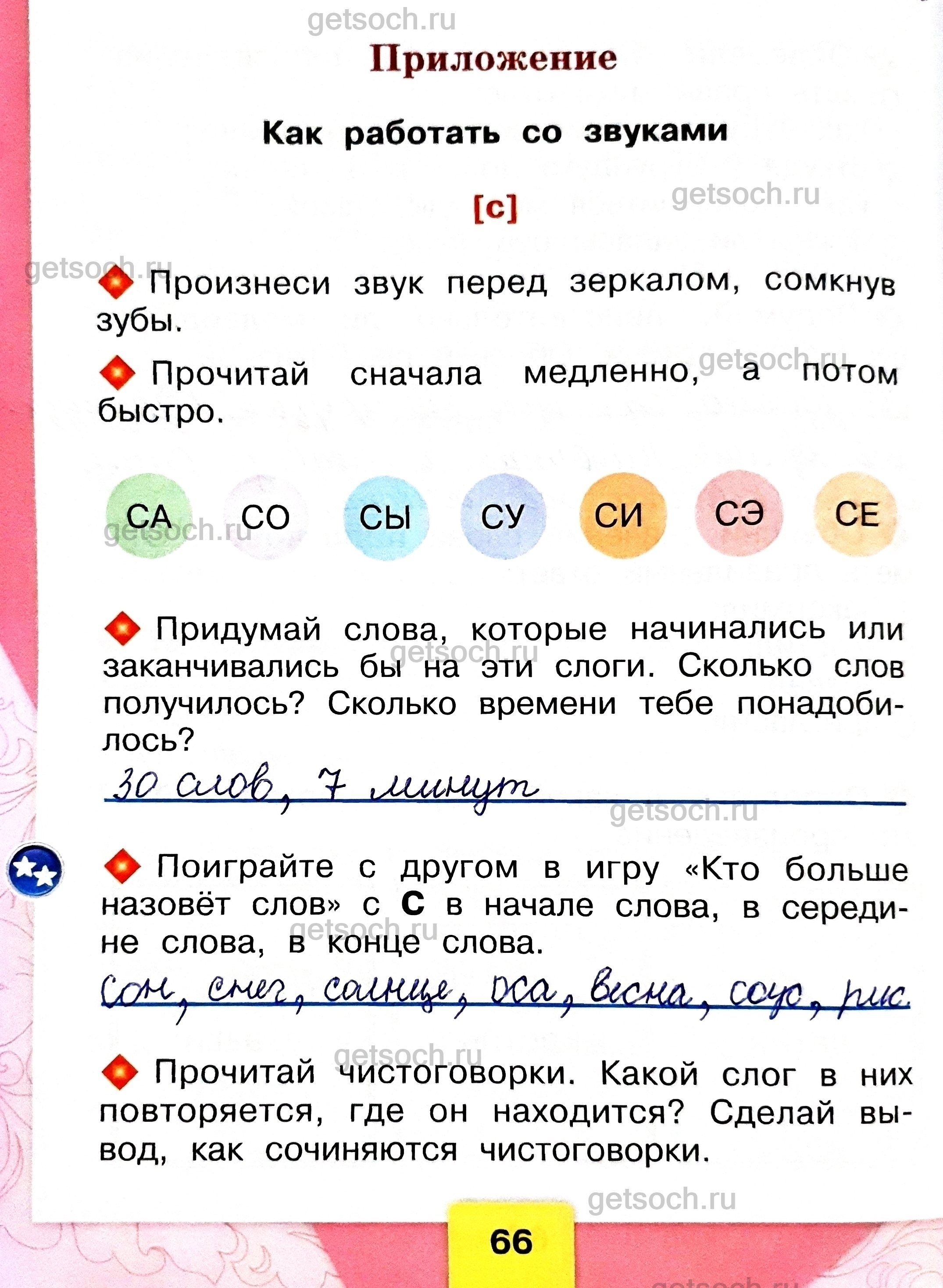 Рассмотрим ответы на задания учебника по литературному чтению для 1 класса автора Бойковой Страница 66