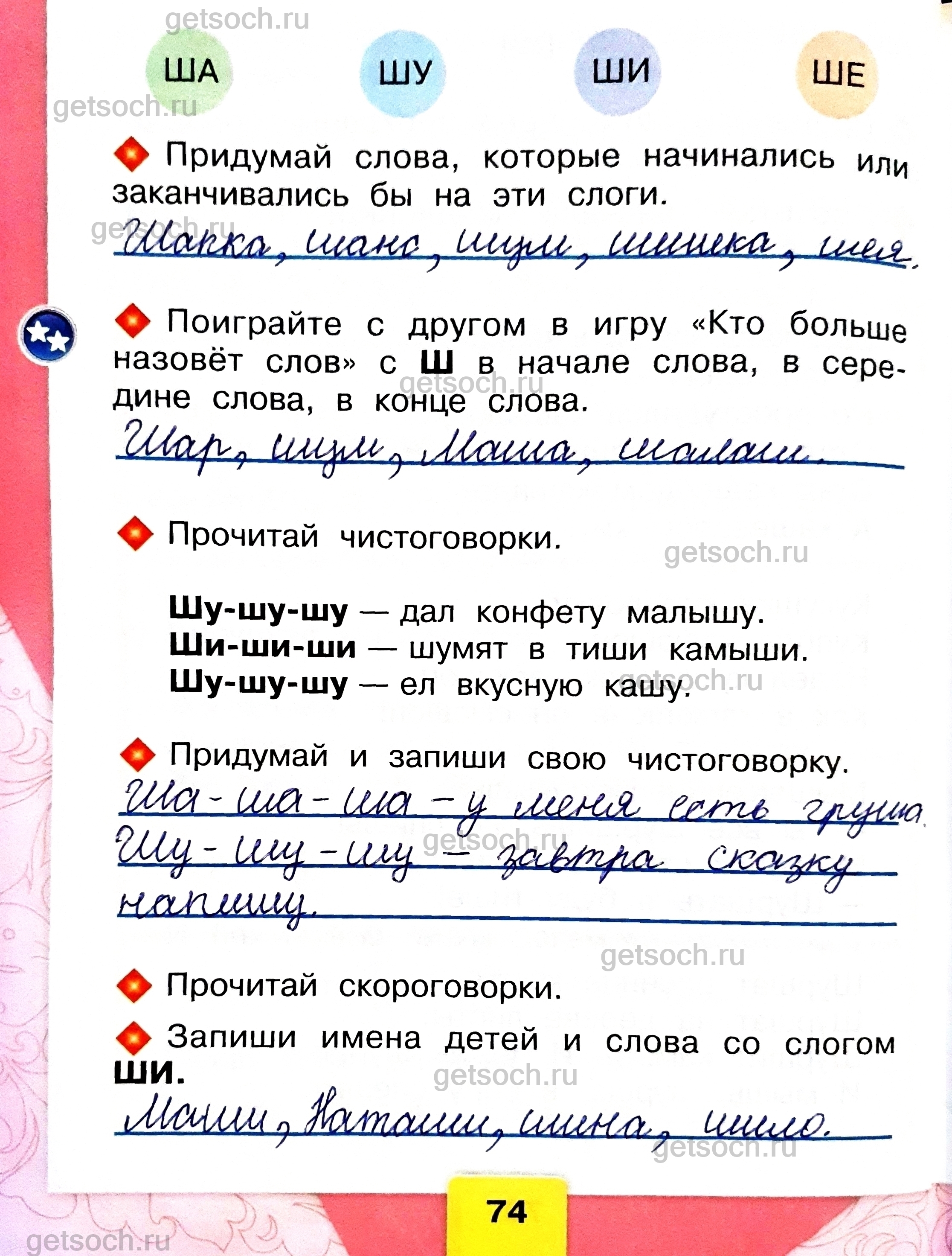 Рассмотрим ответы на задания учебника по литературному чтению для 1 класса автора Бойковой Страница 74