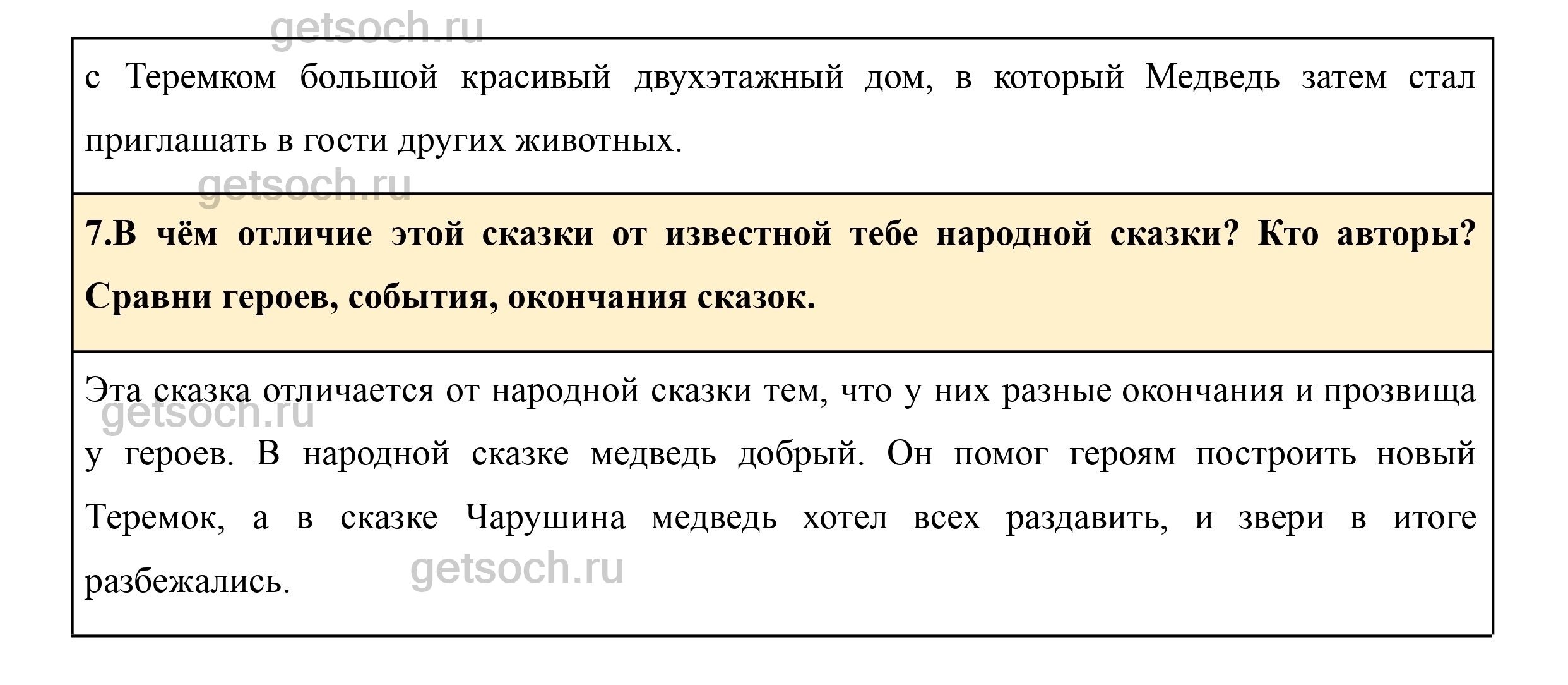 7.В чём отличие этой сказки от известной тебе народной сказки? Кто авторы? Сравни героев, события, окончания сказок.