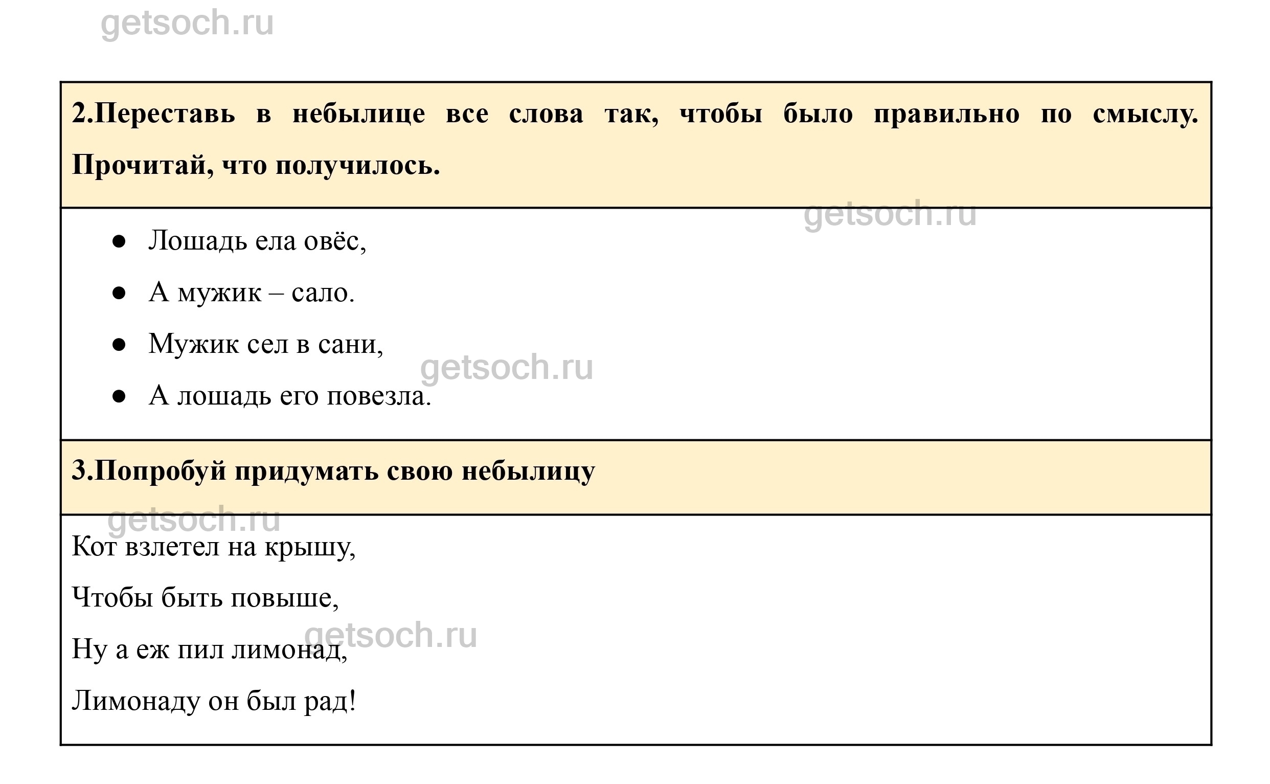 2.Переставь в небылице все слова так, чтобы было правильно по смыслу. Прочитай, что получилось.