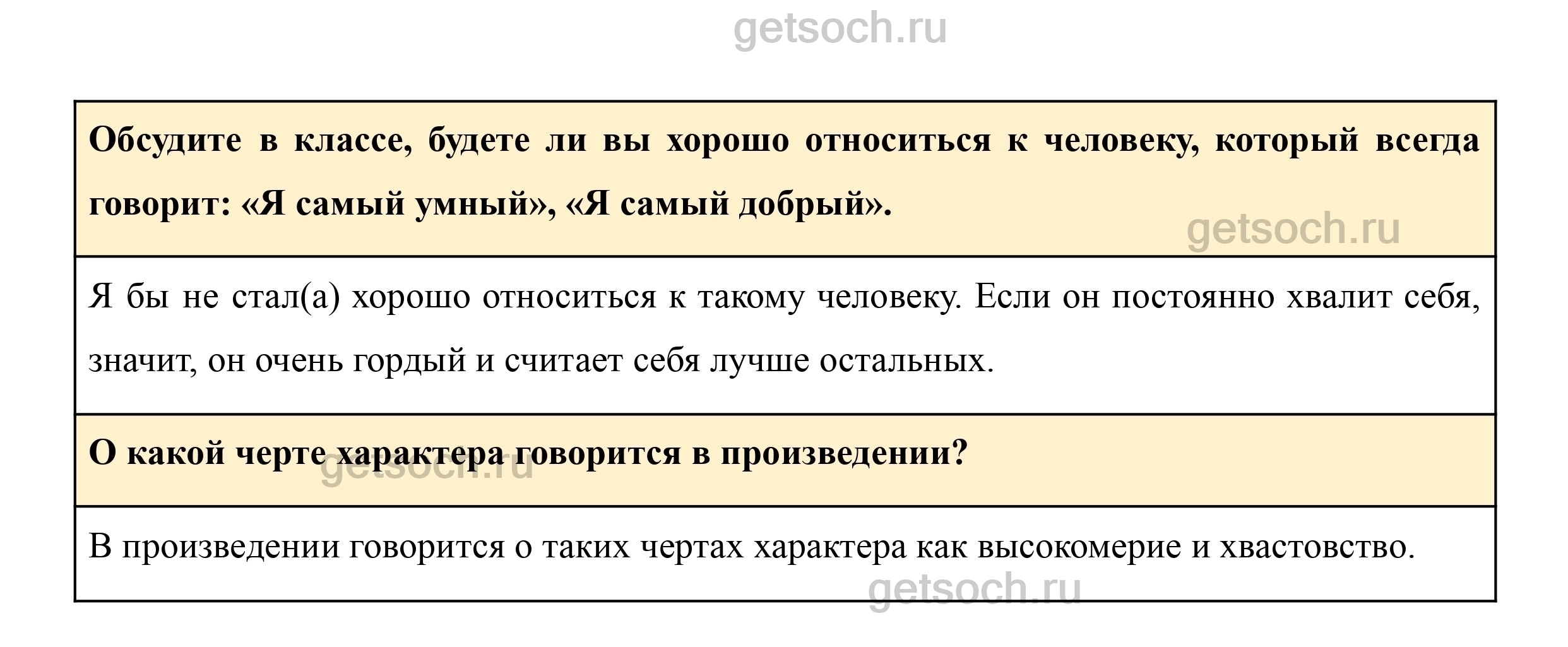 Обсудите в классе, будете ли вы хорошо относиться к человеку, который всегда говорит: «Я самый умный», «Я самый добрый».