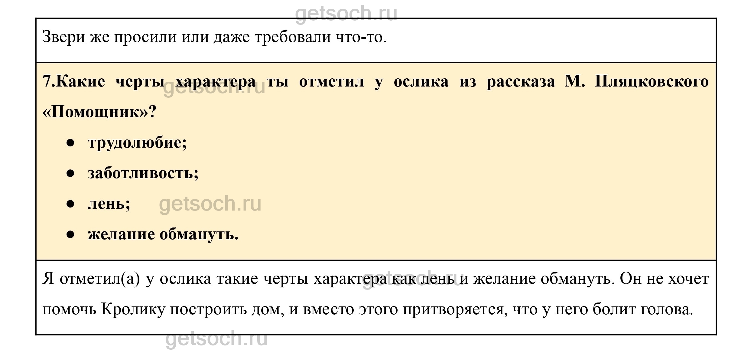 7.Какие черты характера ты отметил у ослика из рассказа М. Пляцковского «Помощник»?