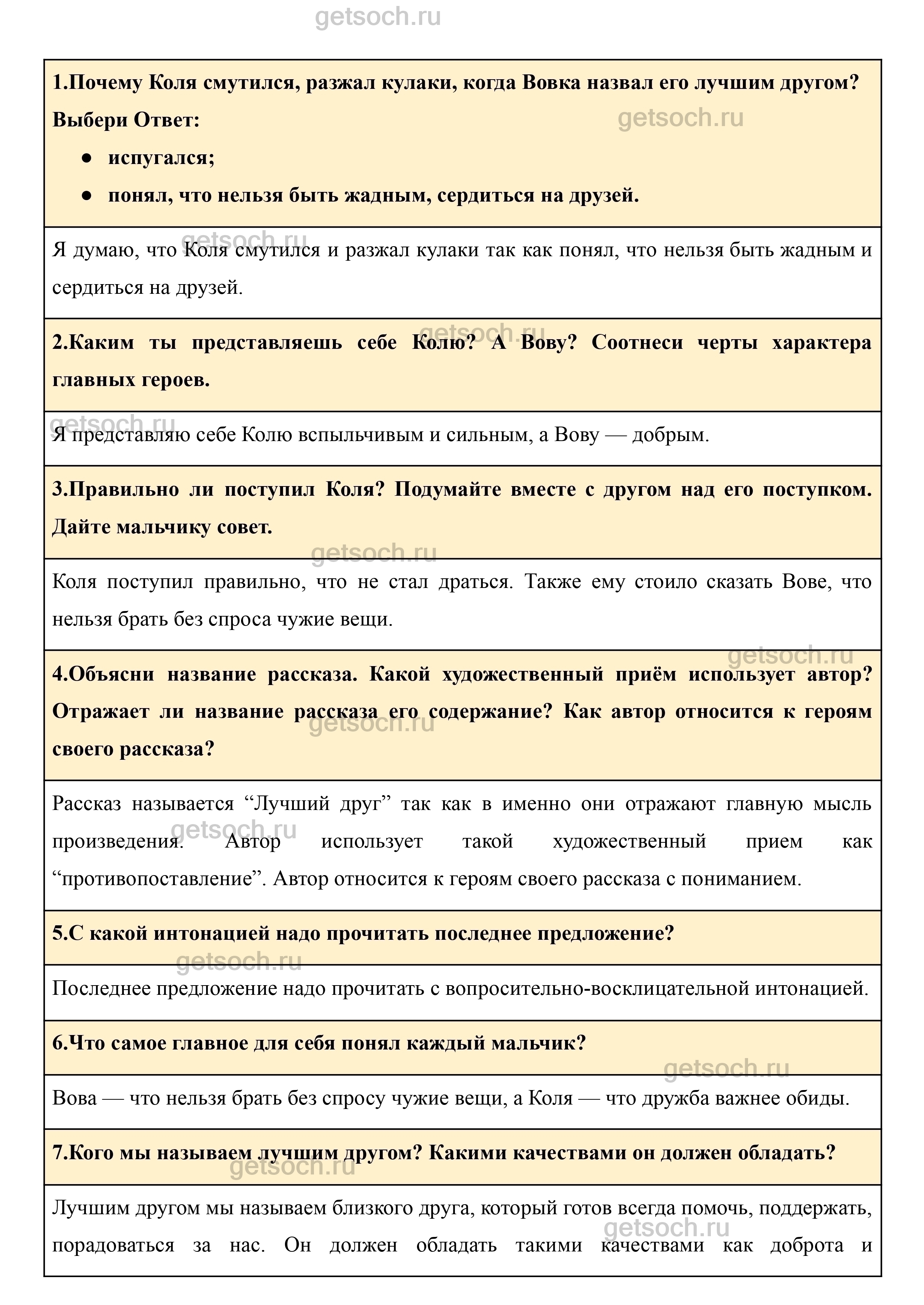 1.Почему Коля смутился, разжал кулаки, когда Вовка назвал его лучшим другом?