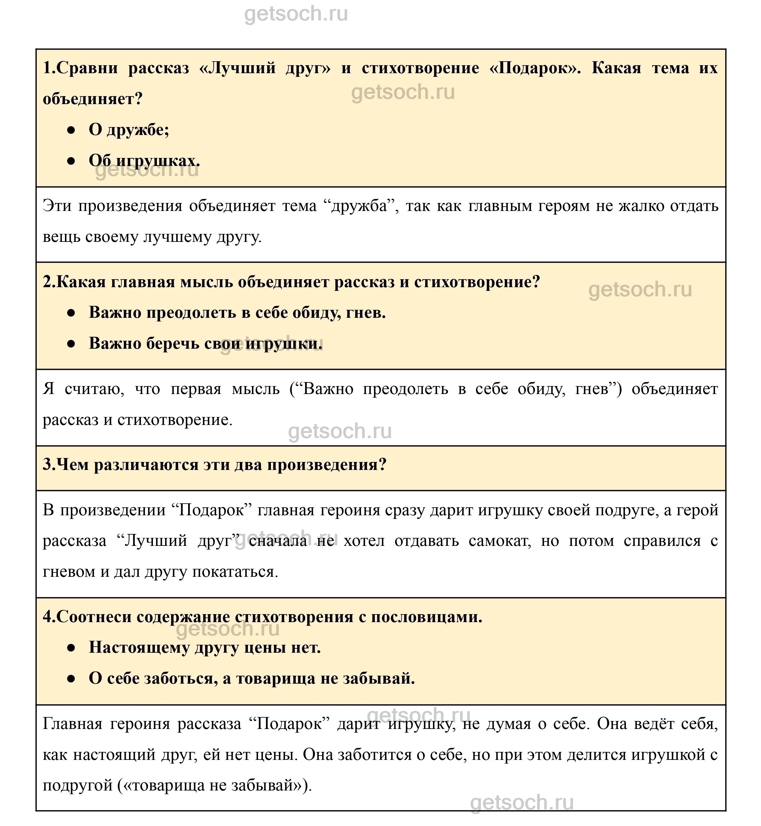 1.Сравни рассказ «Лучший друг» и стихотворение «Подарок». Какая тема их объединяет?