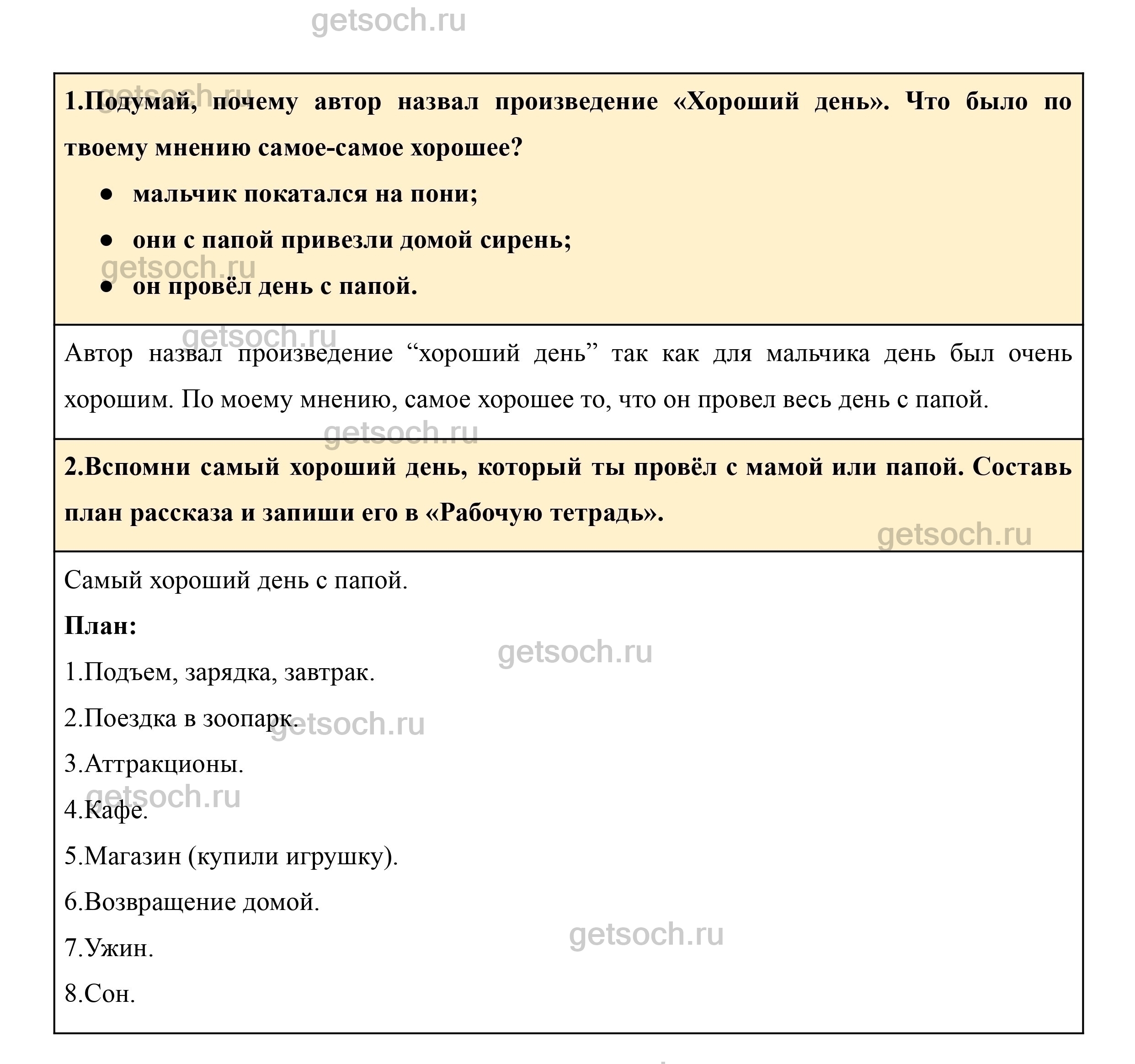 1.Подумай, почему автор назвал произведение «Хороший день». Что было по твоему мнению самое-самое хорошее?