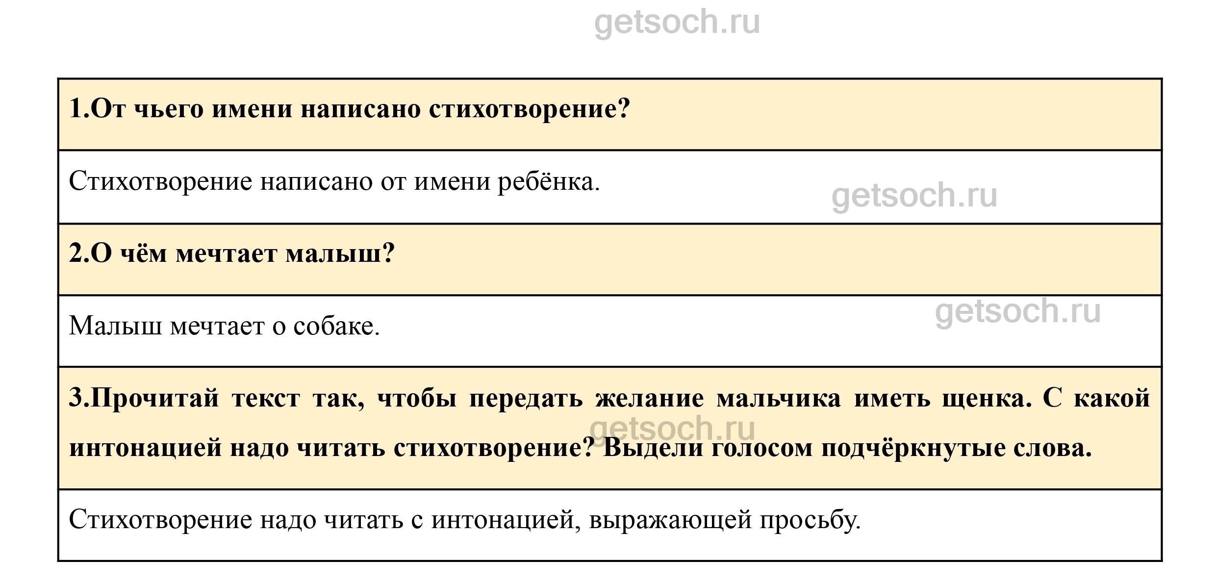 3.Прочитай текст так, чтобы передать желание мальчика иметь щенка. С какой интонацией надо читать стихотворение? Выдели голосом подчёркнутые слова.