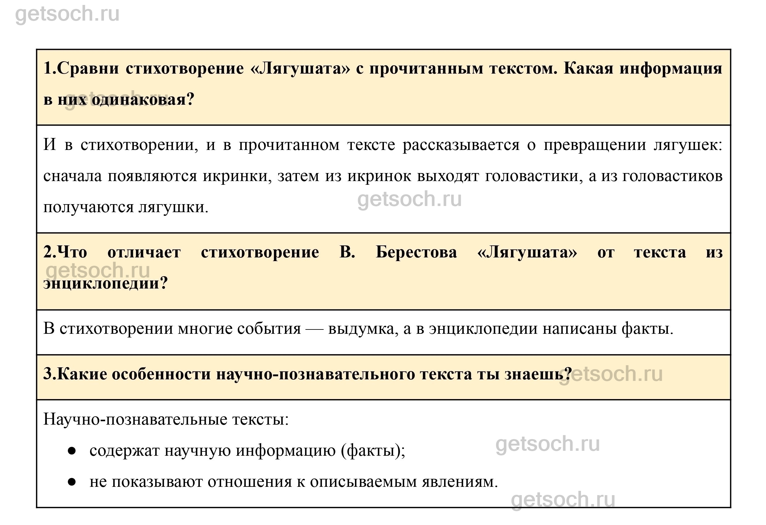 1.Сравни стихотворение «Лягушата» с прочитанным текстом. Какая информация в них одинаковая?