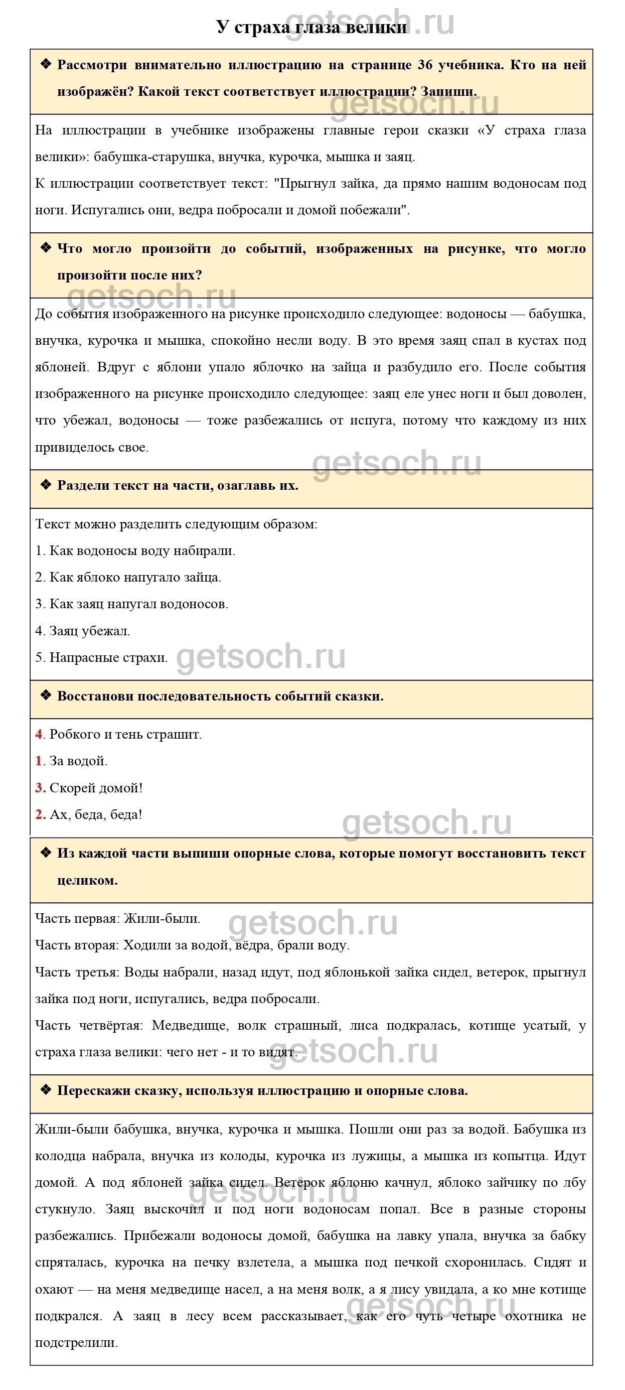 Рассмотри внимательно иллюстрацию на странице 36 учебника. Кто на ней изображён? Какой текст соответствует иллюстрации? Запиши.