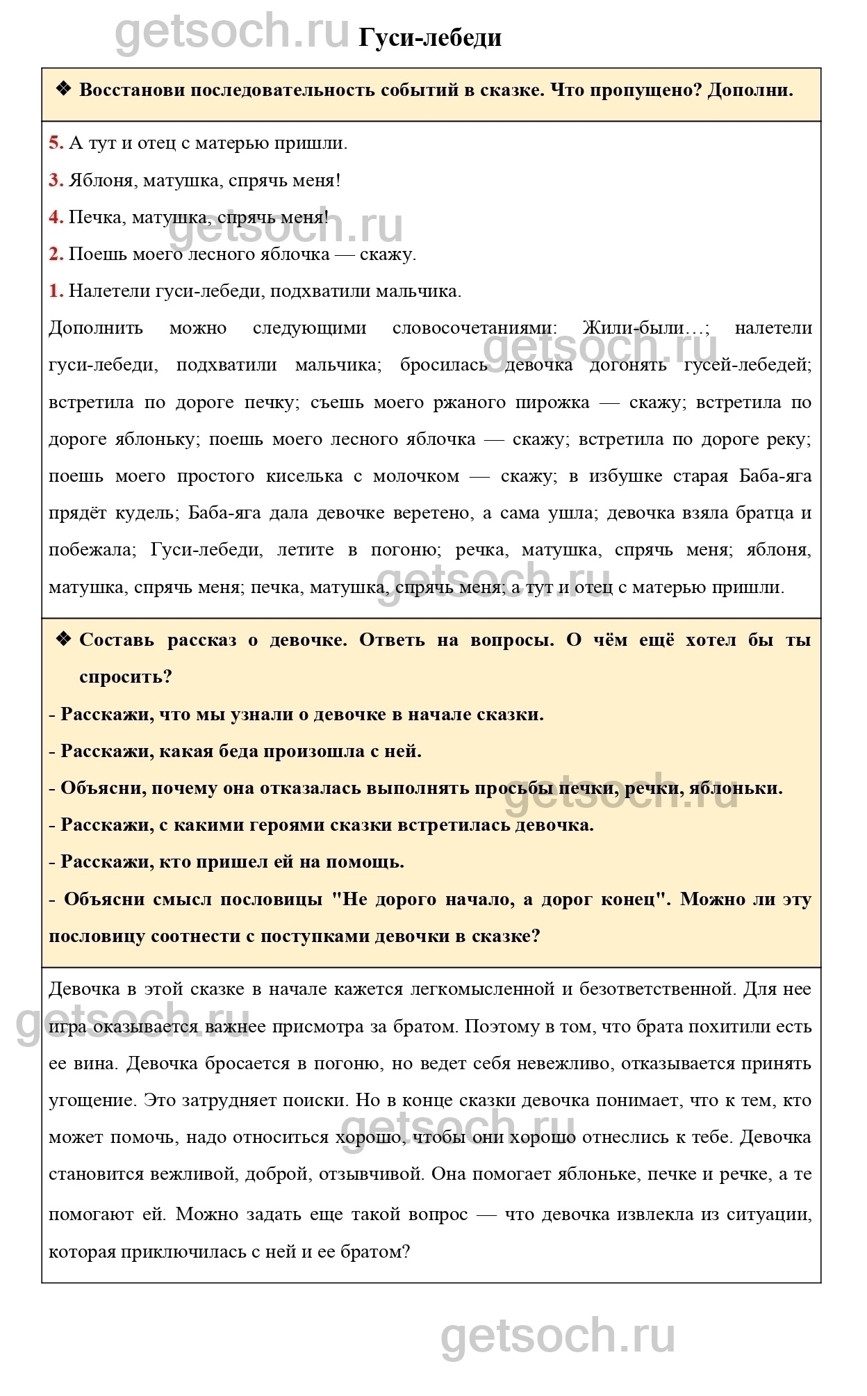 Восстанови последовательность событий в сказке. Что пропущено? Дополни.