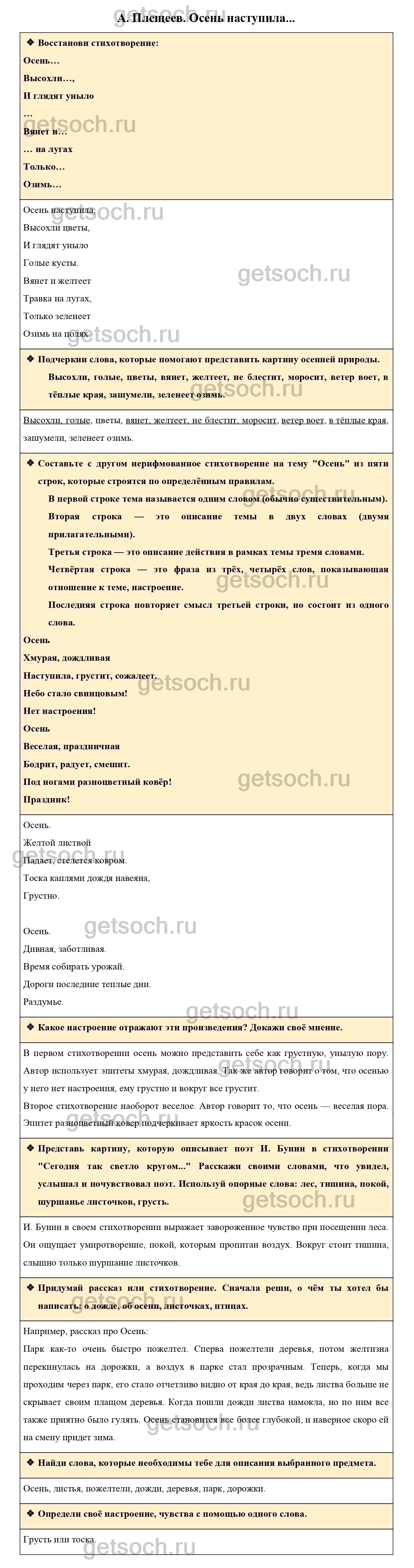 Высохли, голые, цветы, вянет, желтеет, не блестит, моросит, ветер воет, в тёплые края, зашумели, зеленеет озимь.”