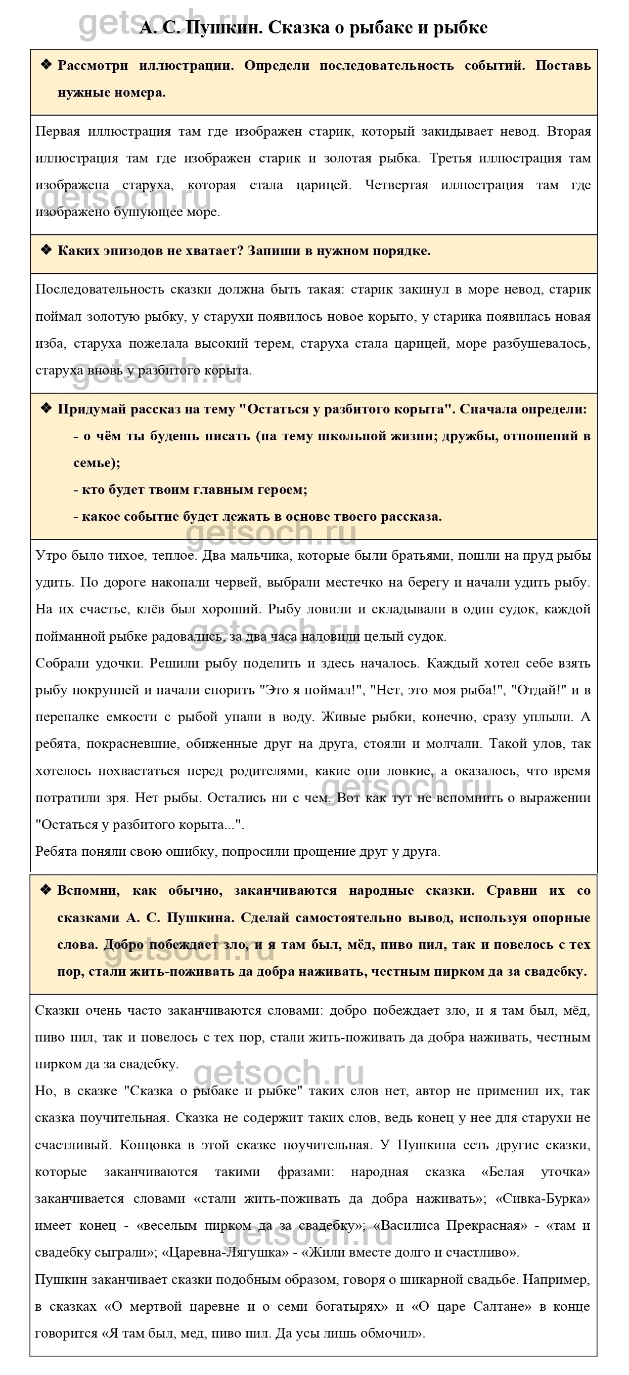 Каких эпизодов не хватает? Запиши в нужном порядке.