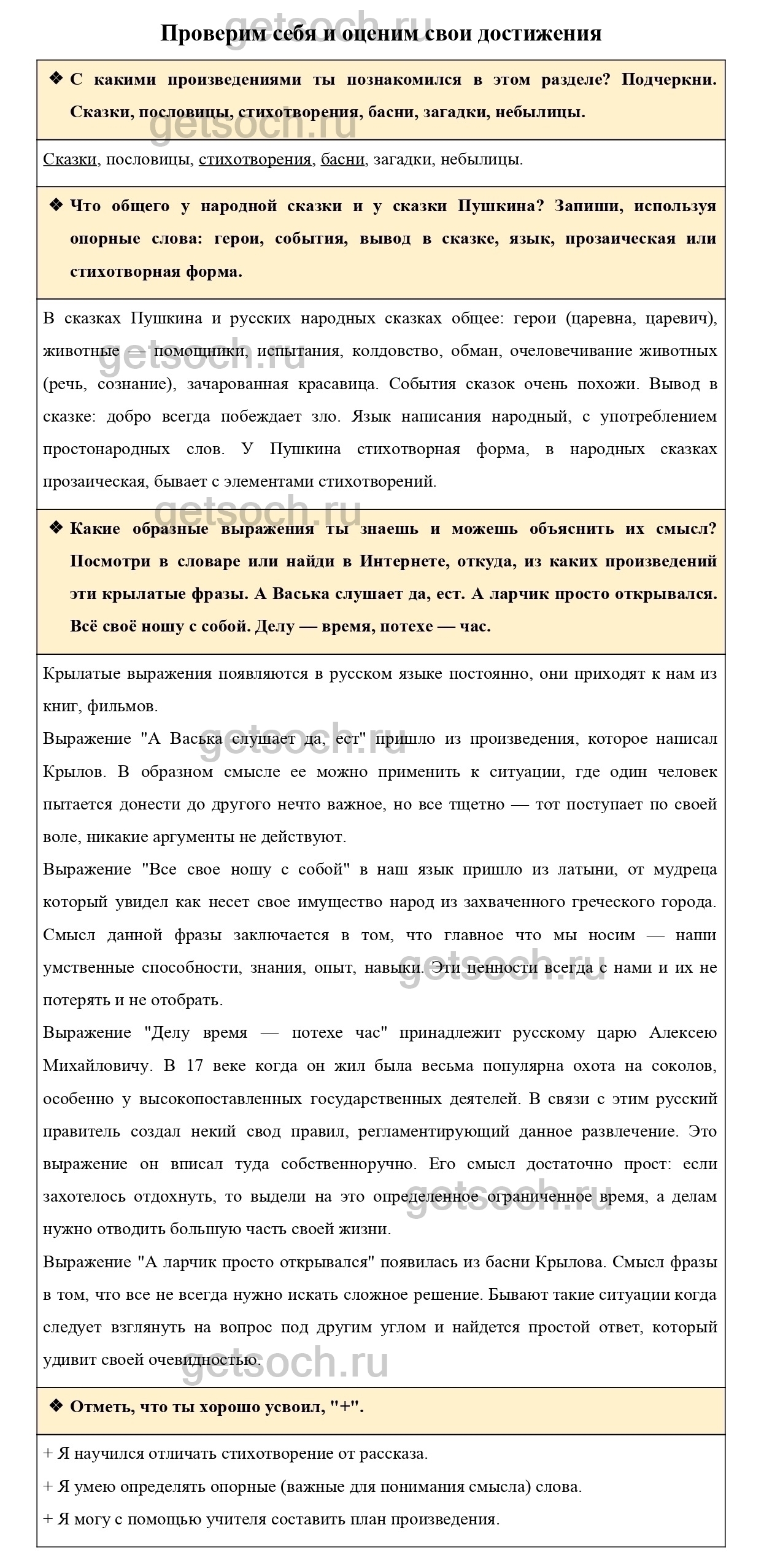 Что общего у народной сказки и у сказки Пушкина? Запиши, используя опорные слова: герои, события, вывод в сказке, язык, прозаическая или стихотворная форма.