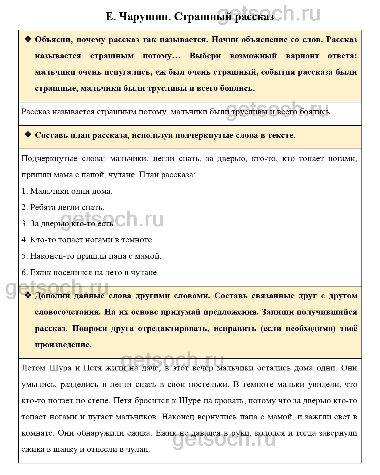 Объясни, почему рассказ так называется. Начни объяснение со слов. Рассказ называется страшным потому… Выбери возможный вариант ответа: мальчики очень испугались, еж был очень страшный, события рассказа были страшные, мальчики были трусливы и всего боялись.
