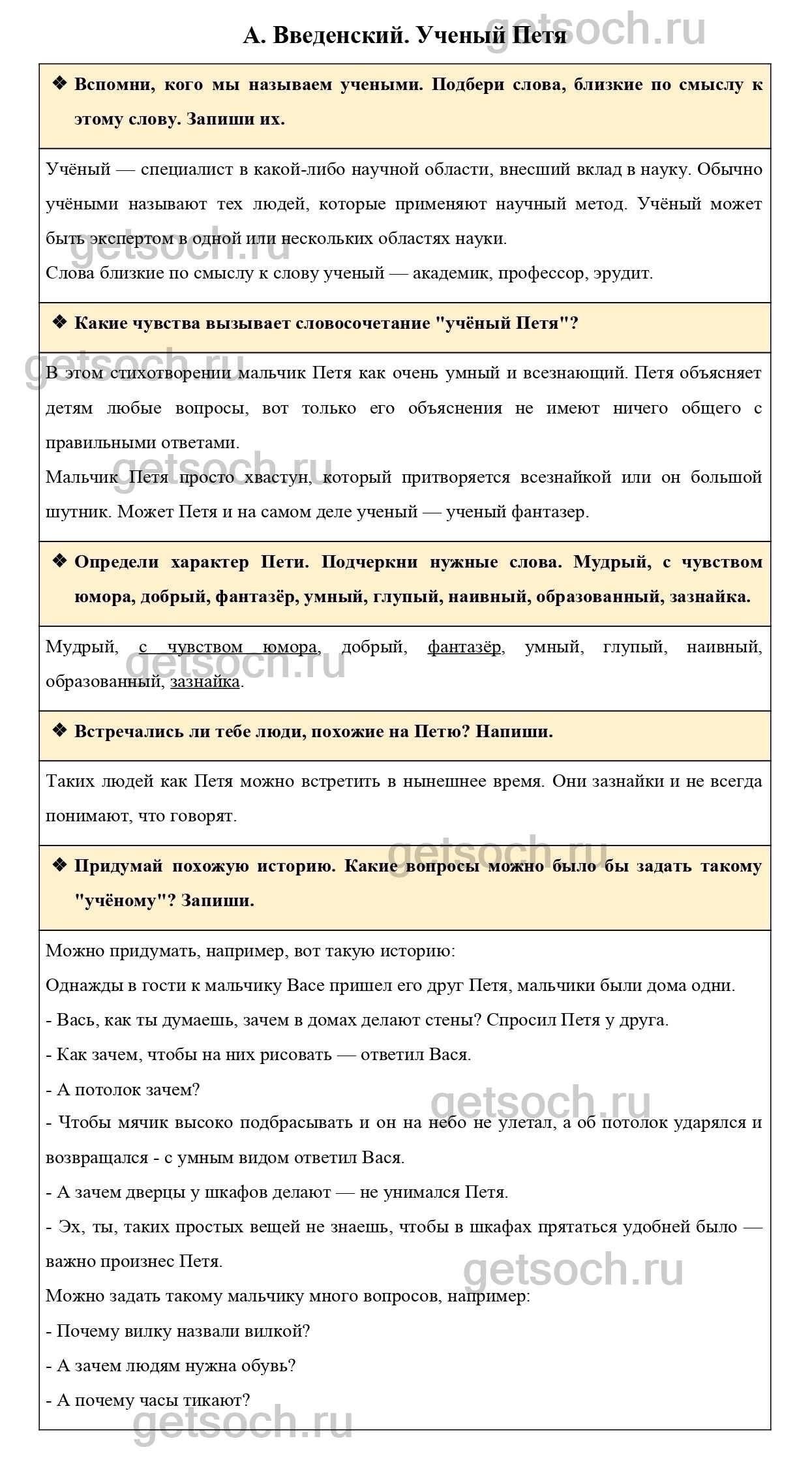 Определи характер Пети. Подчеркни нужные слова. Мудрый, с чувством юмора, добрый, фантазёр, умный, глупый, наивный, образованный, зазнайка.