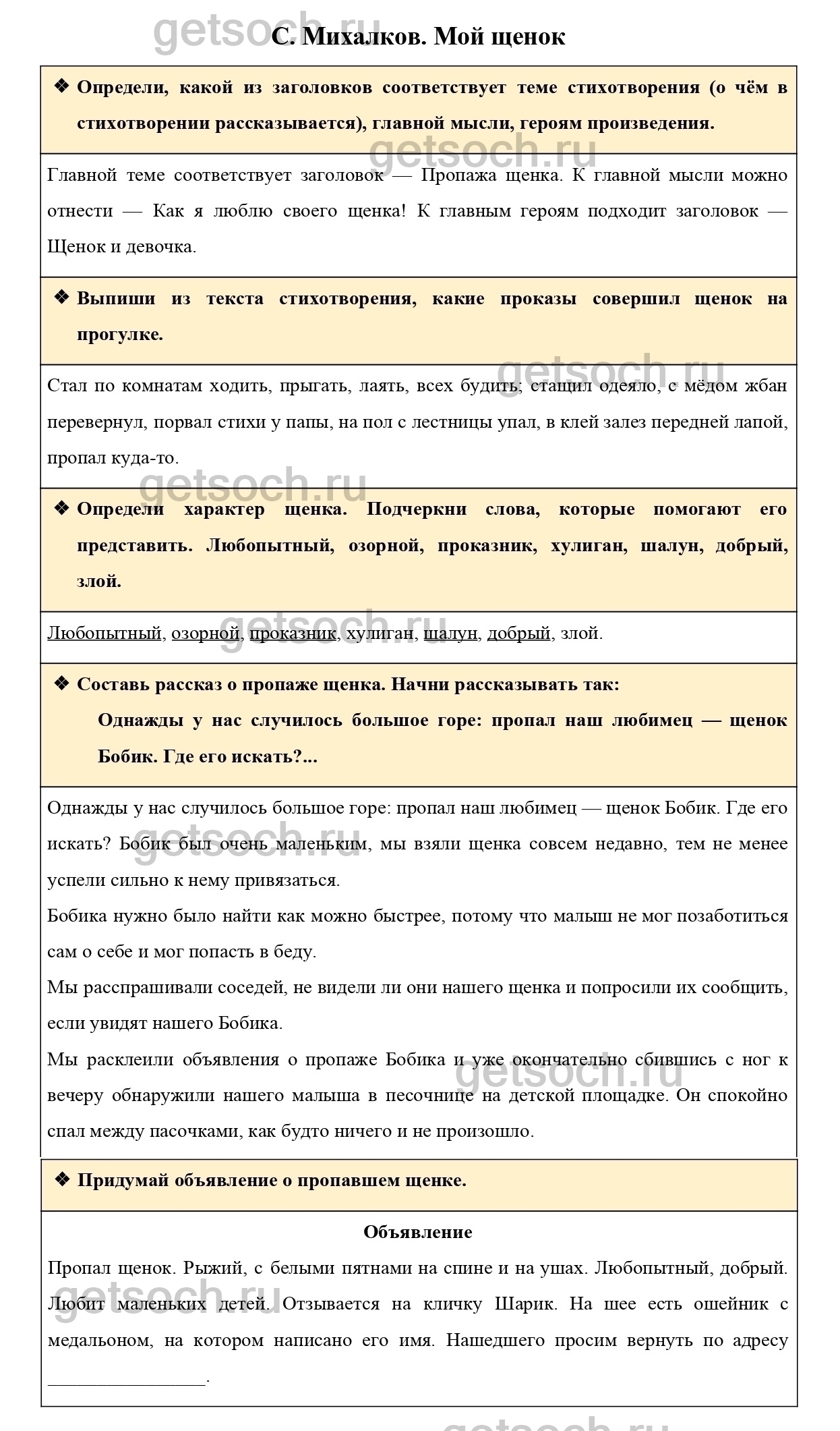 “Составь рассказ о пропаже щенка. Начни рассказывать так: