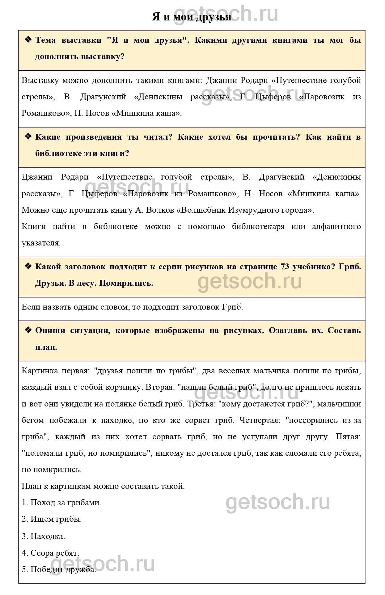 Какой заголовок подходит к серии рисунков на странице 73 учебника? Гриб. Друзья. В лесу. Помирились.