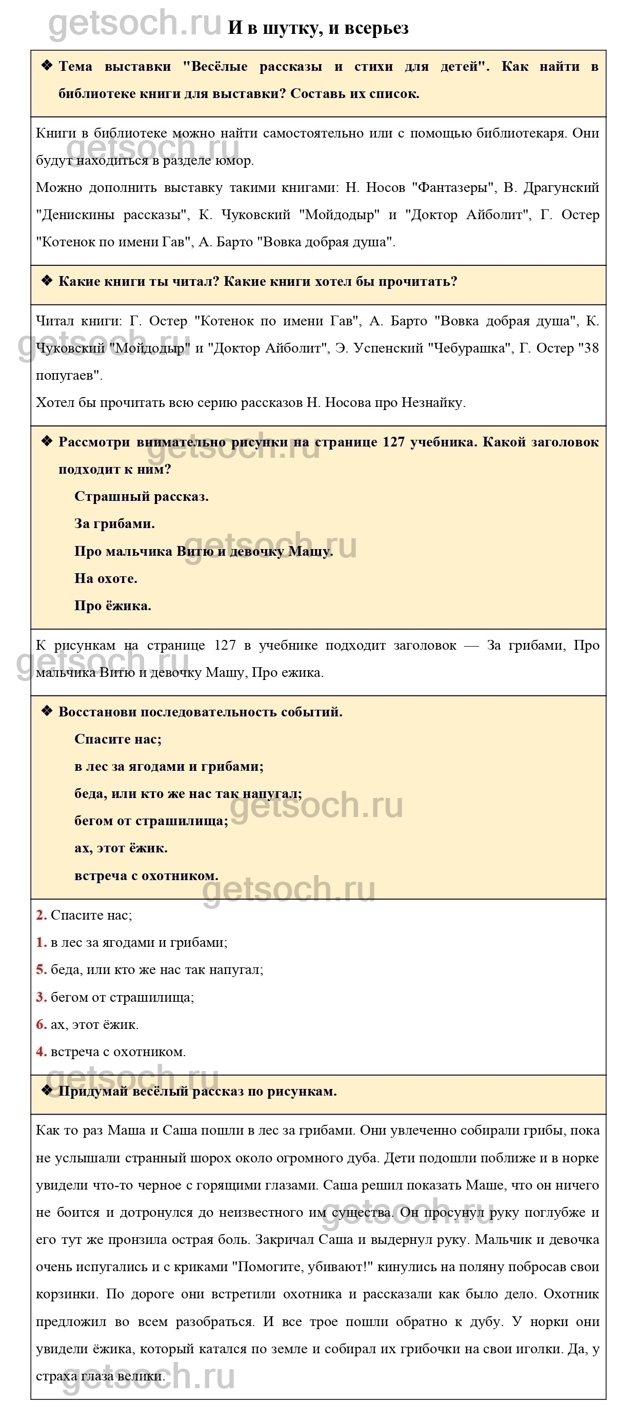 “Рассмотри внимательно рисунки на странице 127 учебника. Какой заголовок подходит к ним?