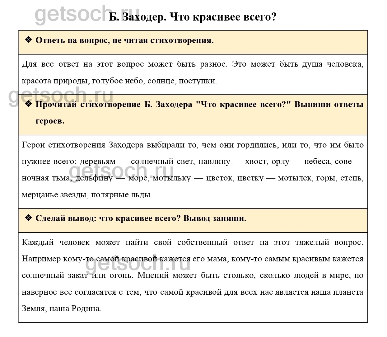 Прочитай стихотворение Б. Заходера “Что красивее всего?” Выпиши ответы героев.