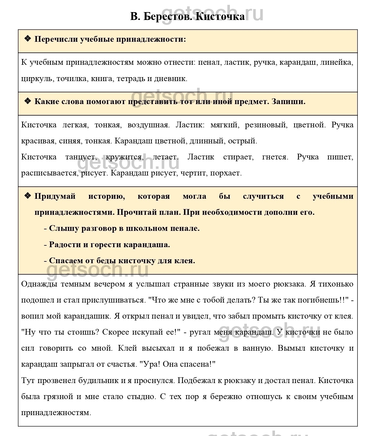 “Придумай историю, которая могла бы случиться с учебными принадлежностями. Прочитай план. При необходимости дополни его.