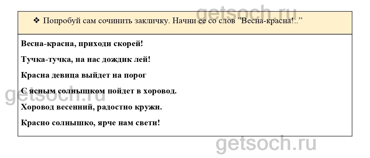 Попробуй сам сочинить закличку. Начни ее со слов ”Весна-красна!..”