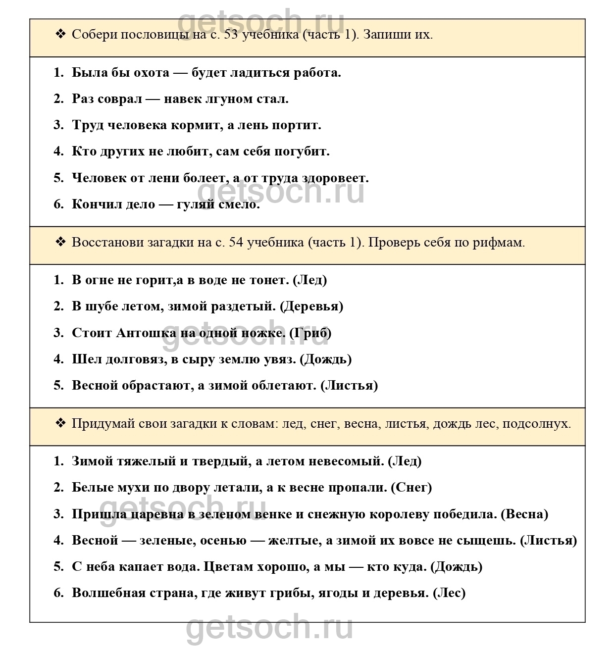 Собери пословицы на с. 53 учебника (часть 1). Запиши их.