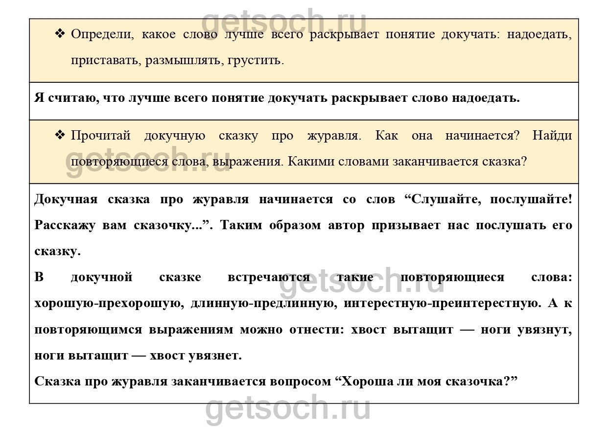Прочитай докучную сказку про журавля. Как она начинается? Найди повторяющиеся слова, выражения. Какими словами заканчивается сказка?