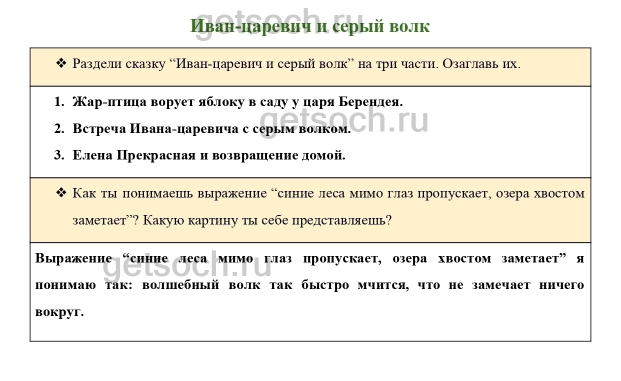Раздели сказку “Иван-царевич и серый волк” на три части. Озаглавь их.