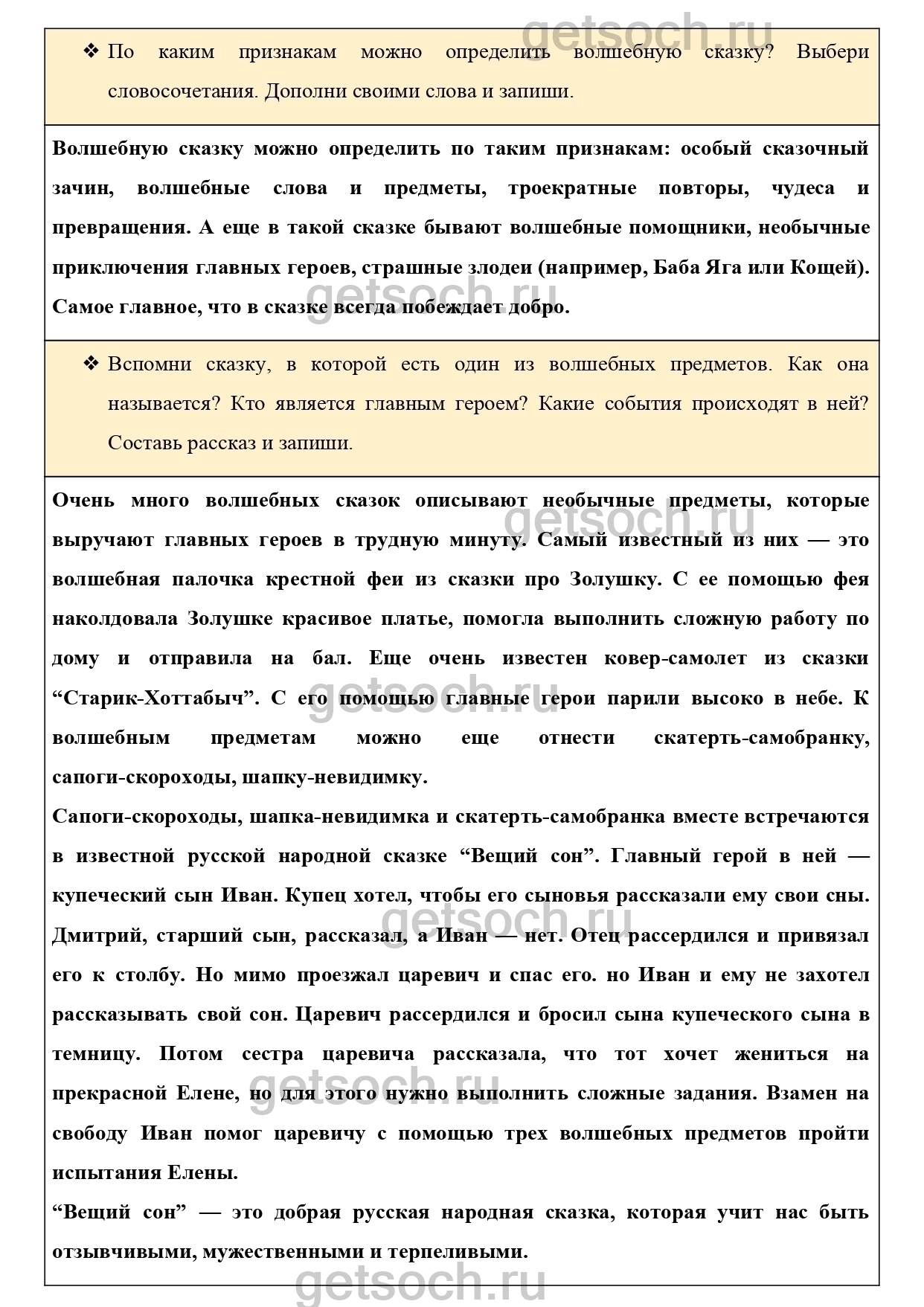 По каким признакам можно определить волшебную сказку? Выбери словосочетания. Дополни своими слова и запиши.