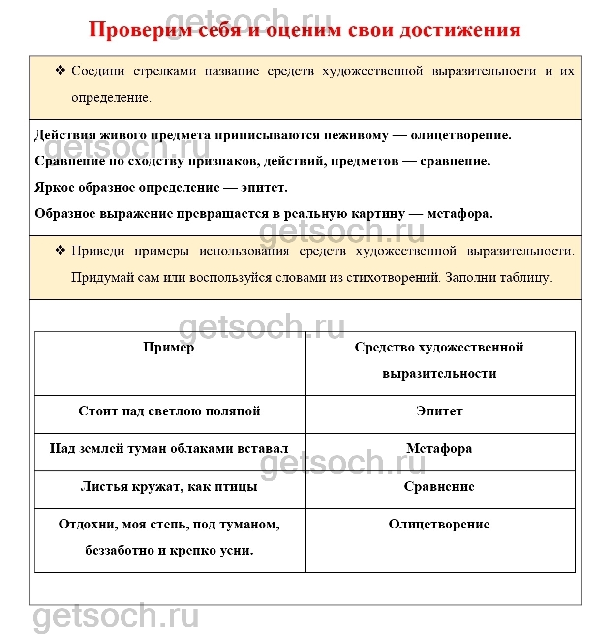 Приведи примеры использования средств художественной выразительности. Придумай сам или воспользуйся словами из стихотворений. Заполни таблицу.