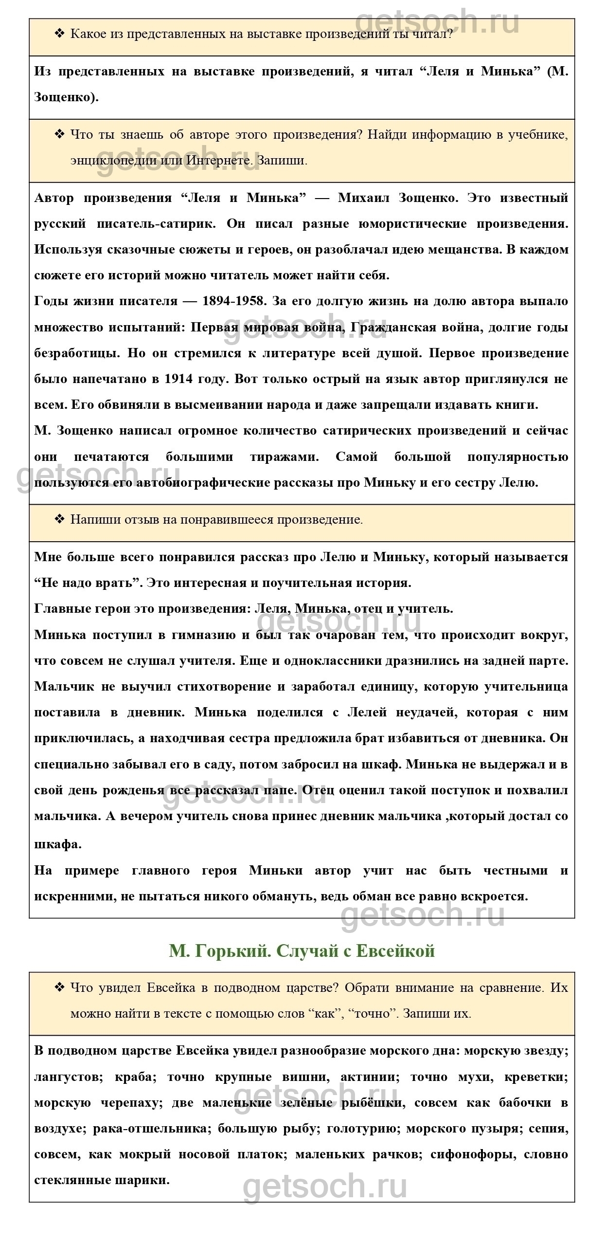 Рассмотрим ответы на Страница 52 из рабочей тетради по литературному чтению для 3 класса Бойкиной