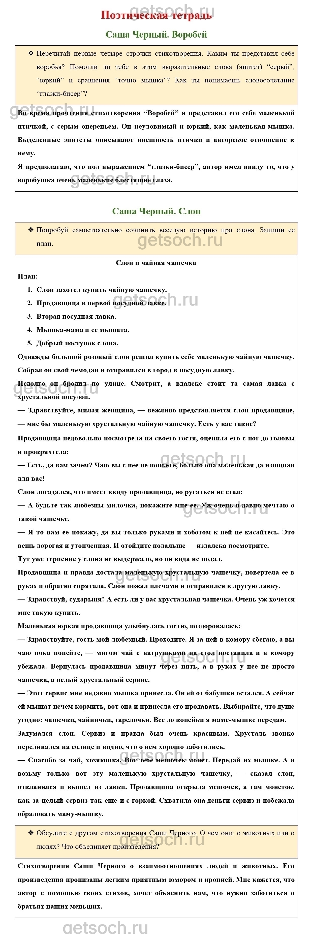 Обсудите с другом стихотворения Саши Черного. О чем они: о животных или о людях? Что объединяет произведения?