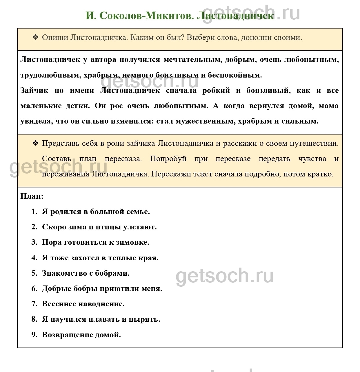 Представь себя в роли зайчика-Листопадничка и расскажи о своем путешествии. Составь план пересказа. Попробуй при пересказе передать чувства и переживания Листопадничка. Перескажи текст сначала подробно, потом кратко.