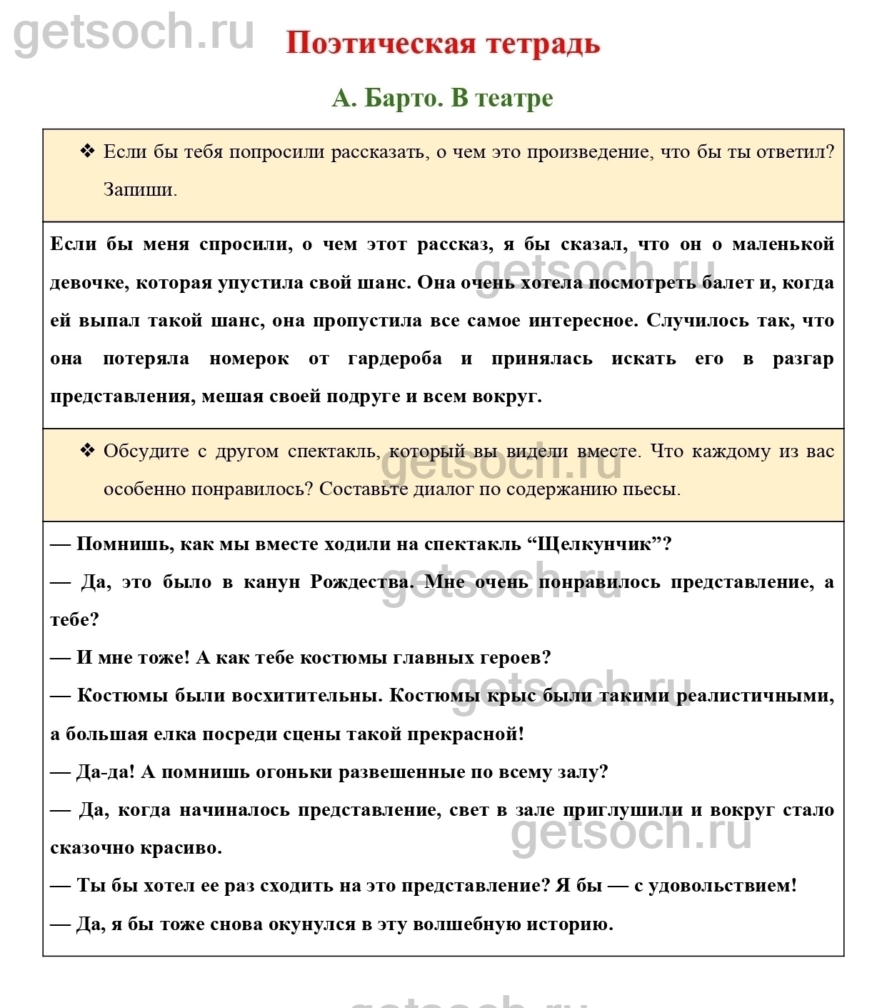 Обсудите с другом спектакль, который вы видели вместе. Что каждому из вас особенно понравилось? Составьте диалог по содержанию пьесы.