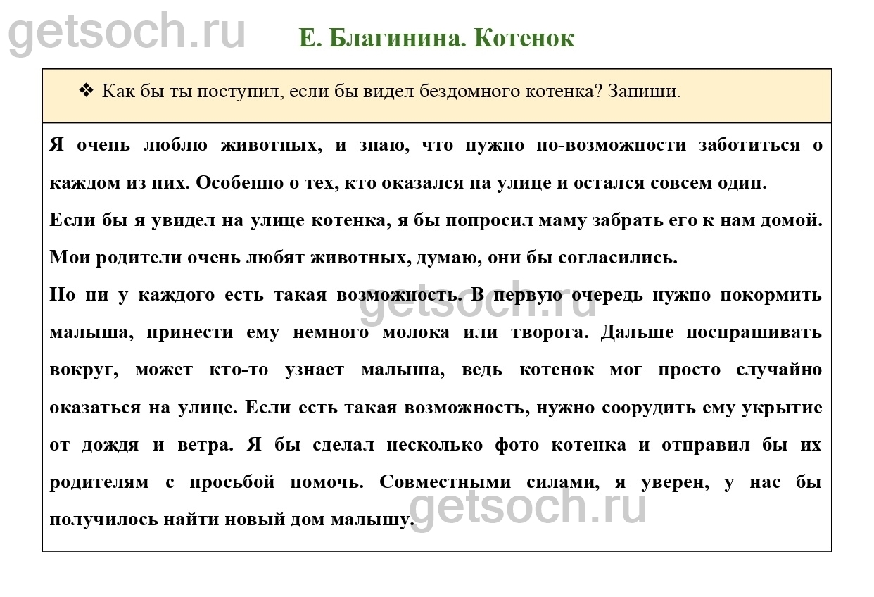 Страница 75— ГДЗ по Литературному чтению 3 класс Рабочая тетрадь Бойкина М.В., Виноградская Л.А. Оставьте комментарий / ГДЗ по Литературному чтению 3 класс Рабочая тетрадь Бойкина М.В., Виноградская Л.А. / От admin Развернуть Рассмотрим ответы на Страница 75 из рабочей тетради по литературному чтению для 3 класса Бойкиной Как бы ты поступил, если бы видел бездомного котенка? Запиши. Выберите страницу тетради 467891011121314151617181920212223242526272829303132333436373839404142434445464748495051525354555657586061626364656667686970717273747576777879808182838485868788899294