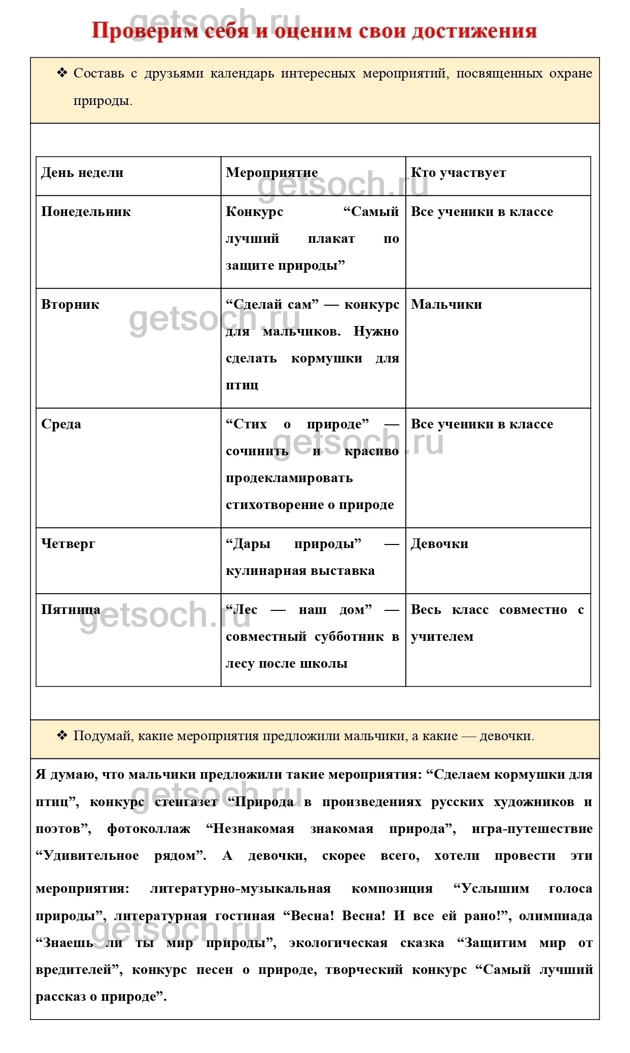 Подумай, какие мероприятия предложили мальчики, а какие — девочки.