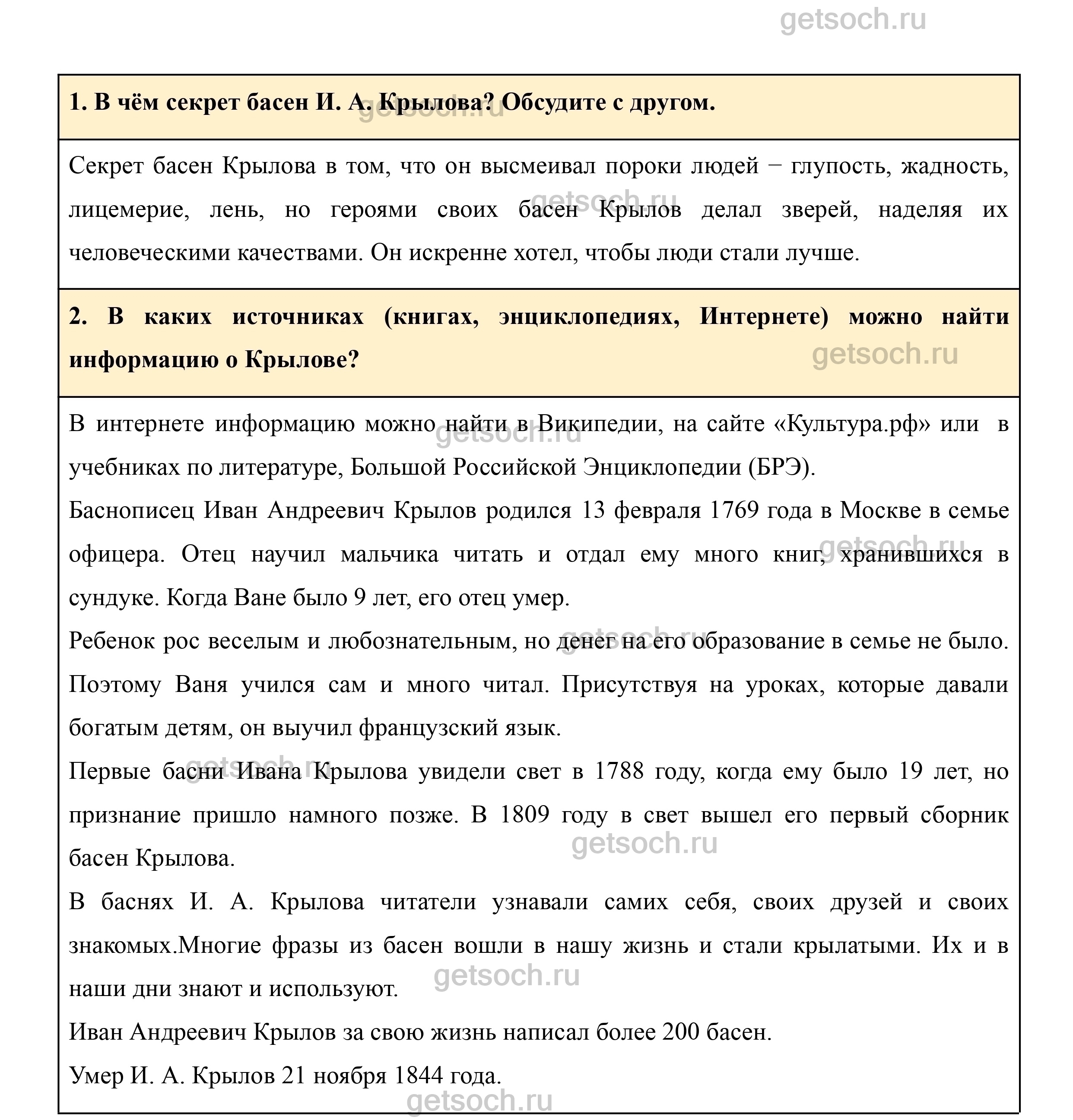 1. В чём секрет басен И. А. Крылова? Обсудите с другом.