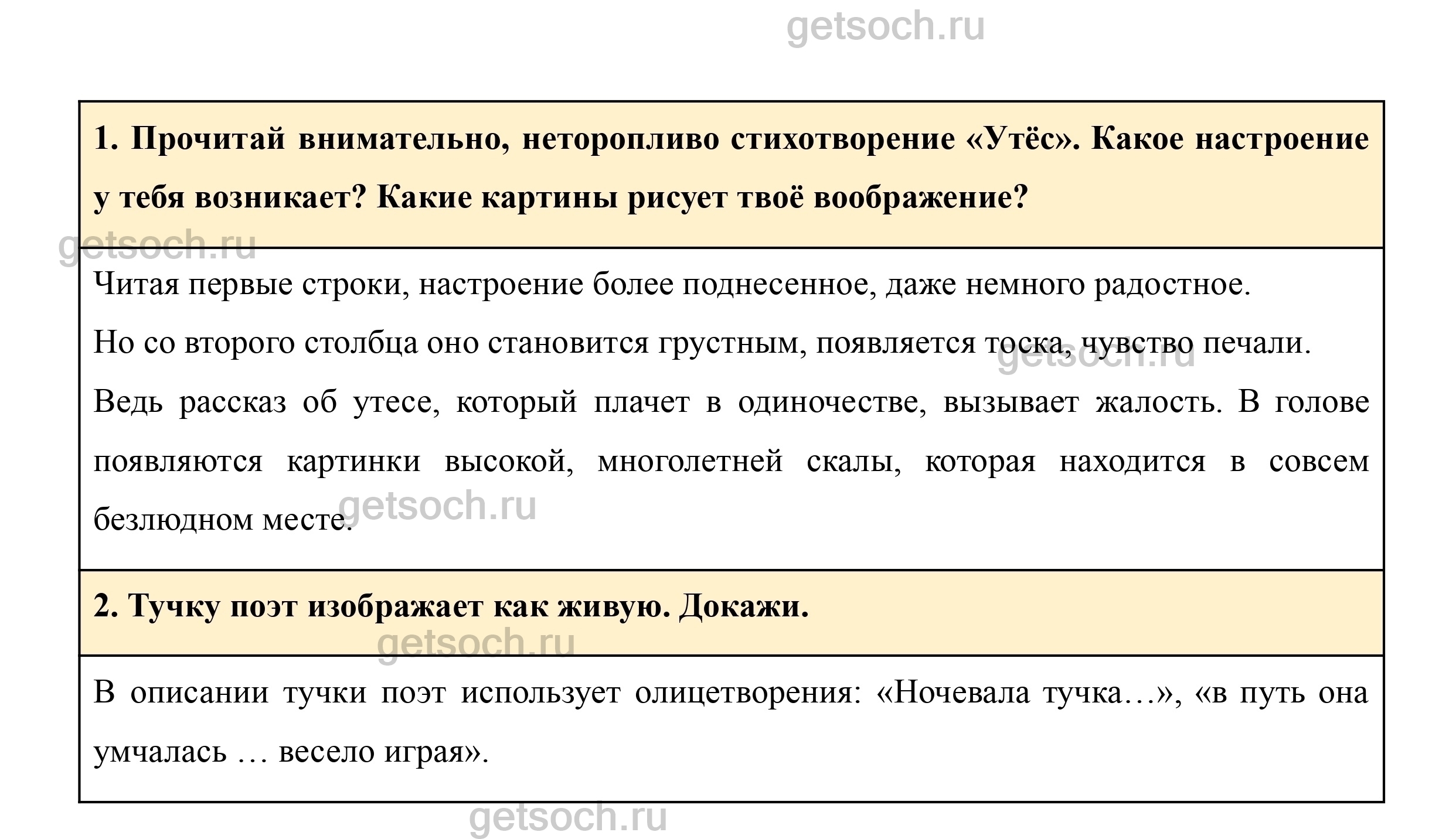 1. Прочитай внимательно, неторопливо стихотворение «Утёс». Какое настроение у тебя возникает? Какие картины рисует твоё воображение?