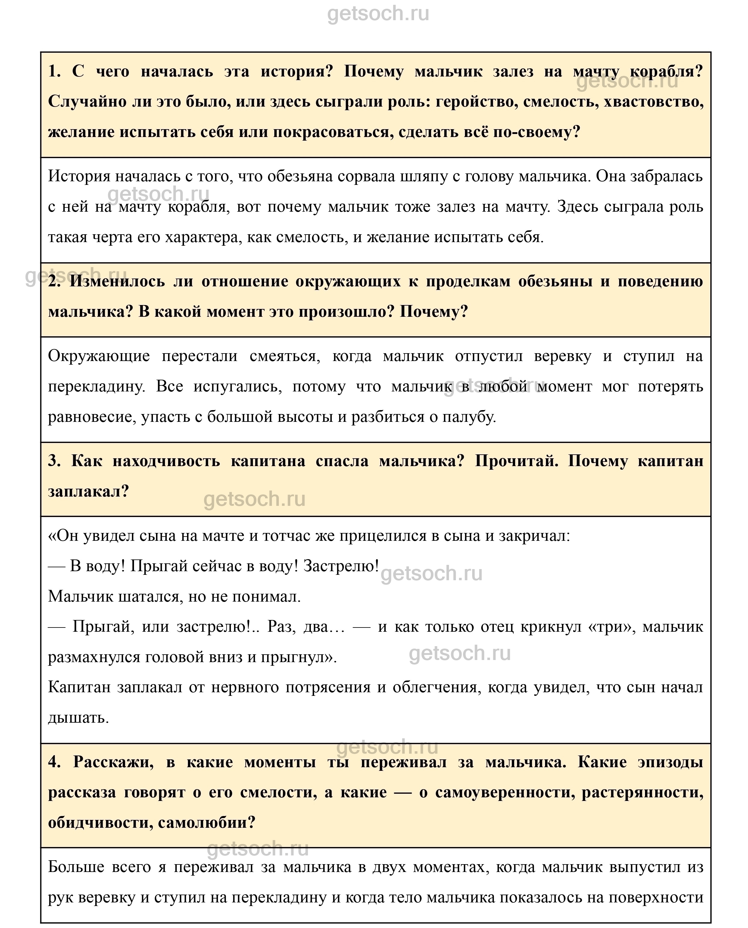 1. С чего началась эта история? Почему мальчик залез на мачту корабля? Случайно ли это было, или здесь сыграли роль: геройство, смелость, хвастовство, желание испытать себя или покрасоваться, сделать всё по-своему?